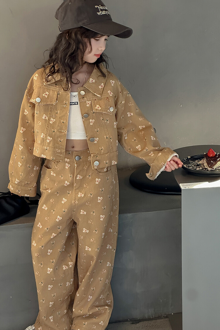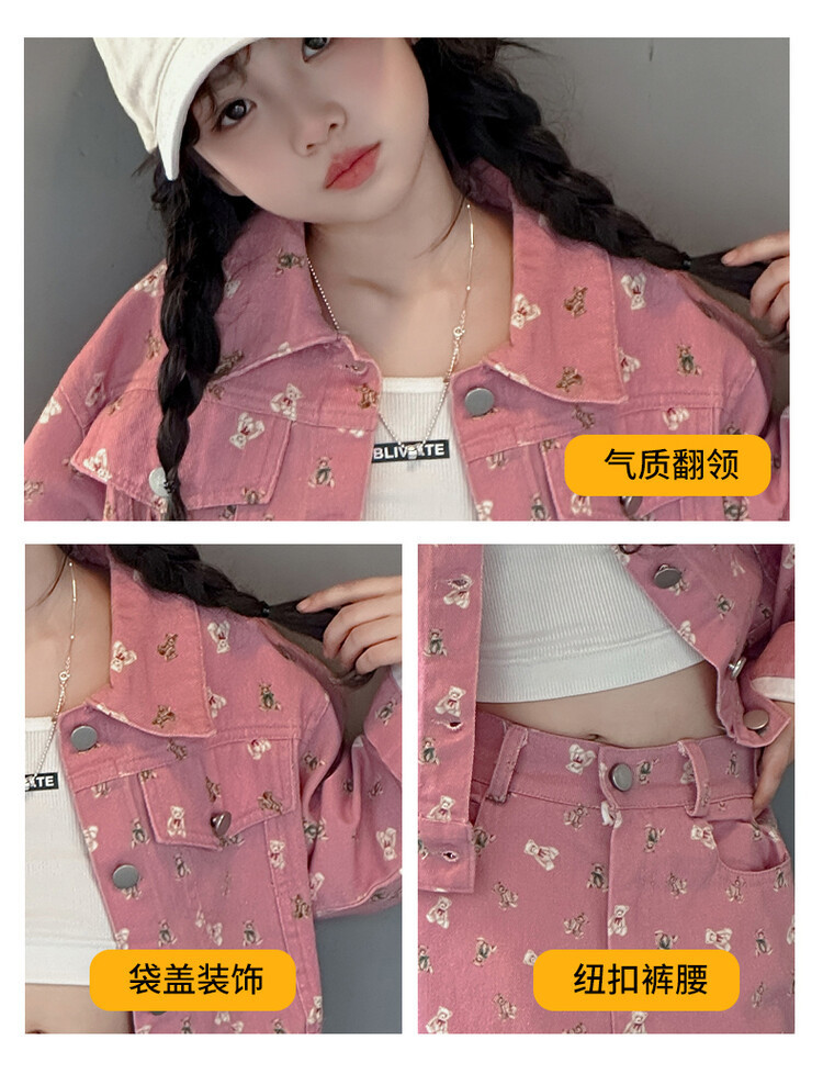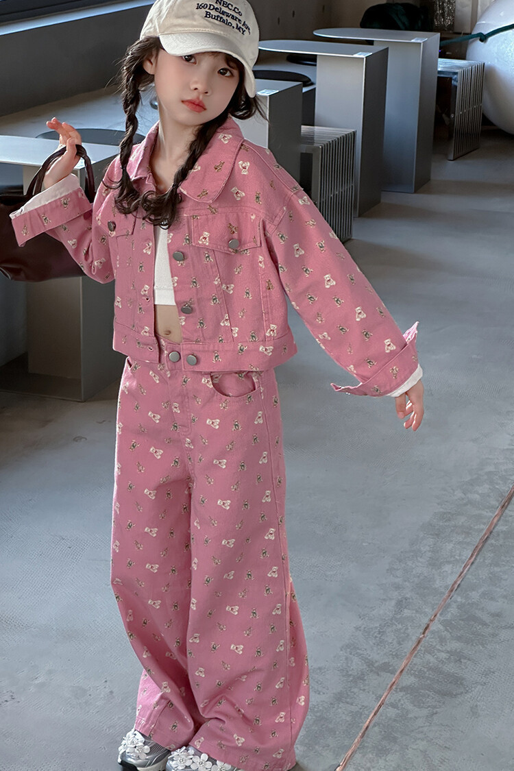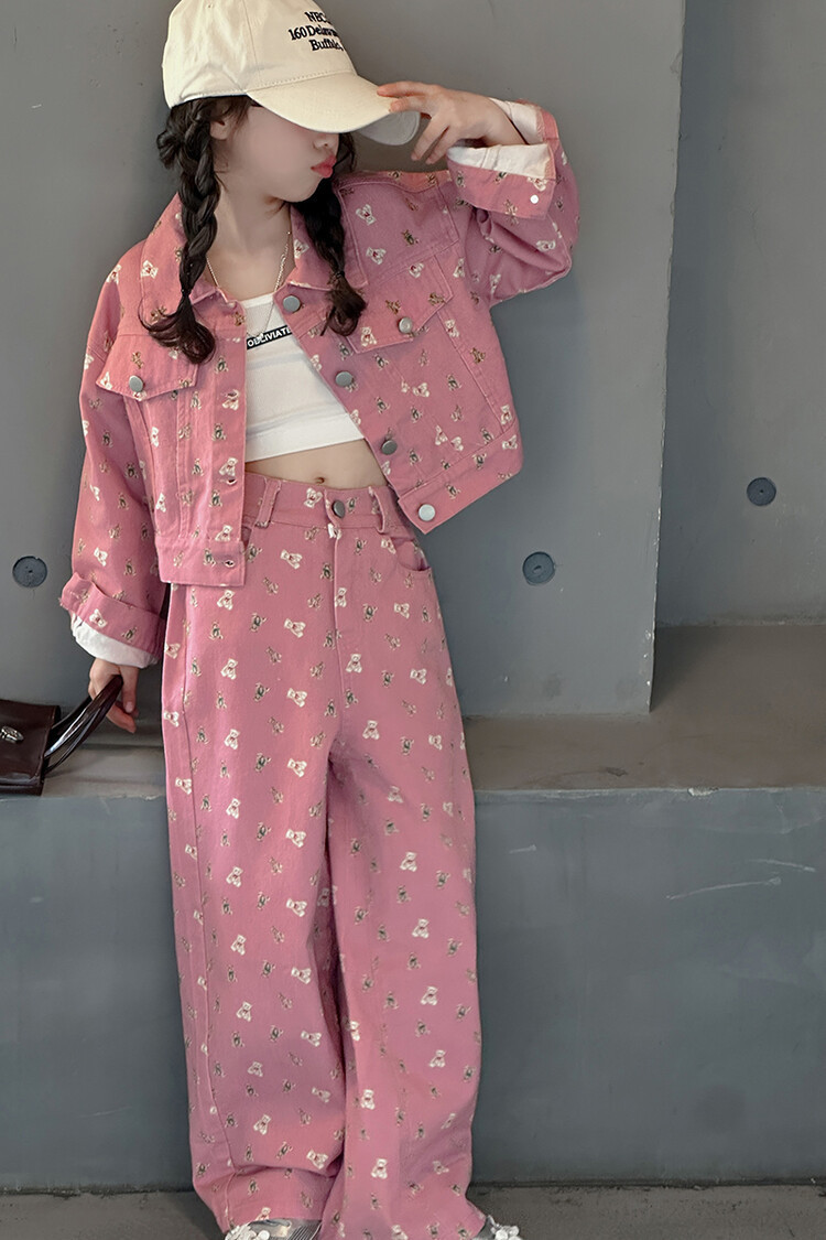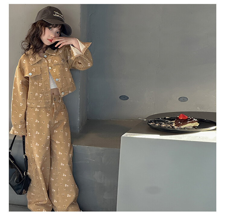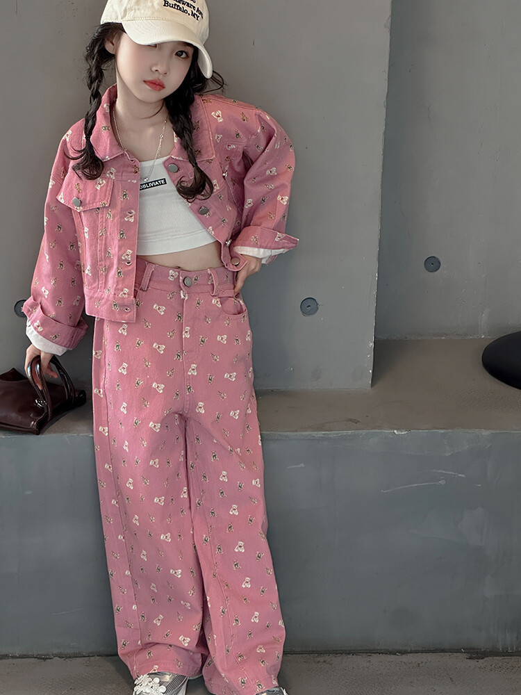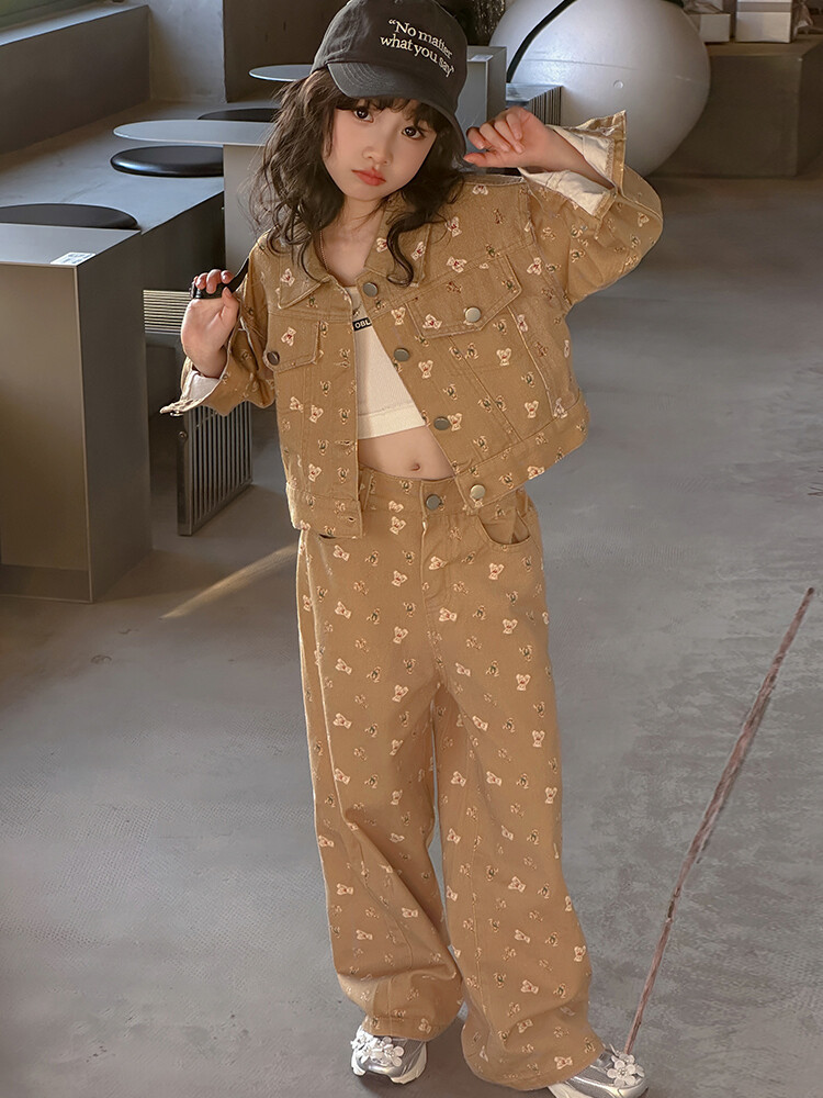 국경 간 어린이 봄 2024 년 새 소녀 세트 서양식 복고풍 한국식 워시 코튼 얇은 데님 투피스 세트스토어 가기