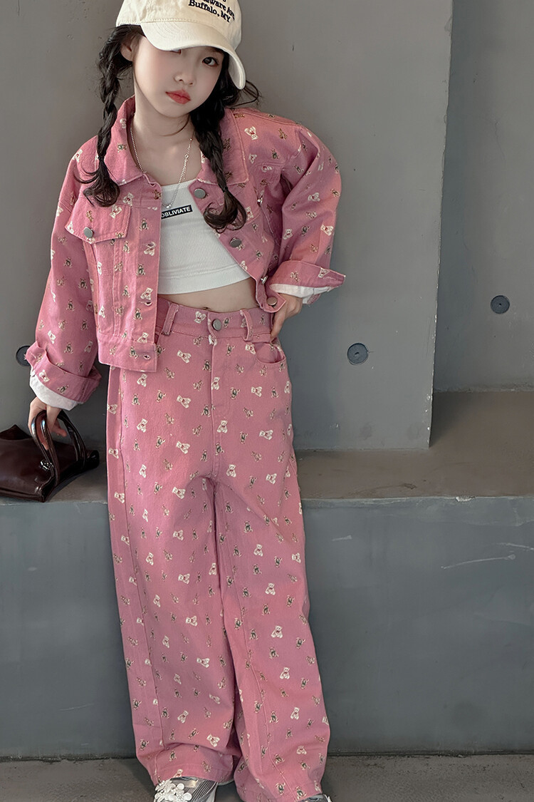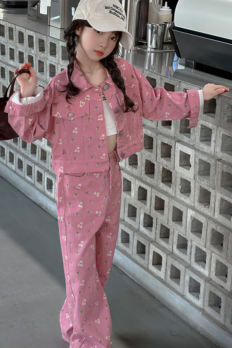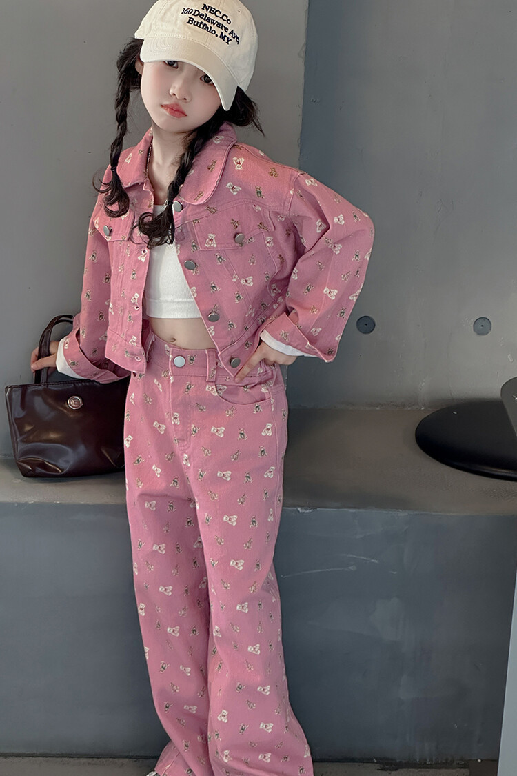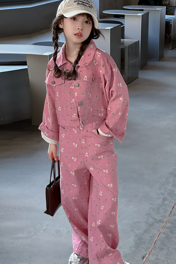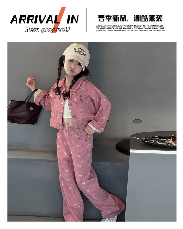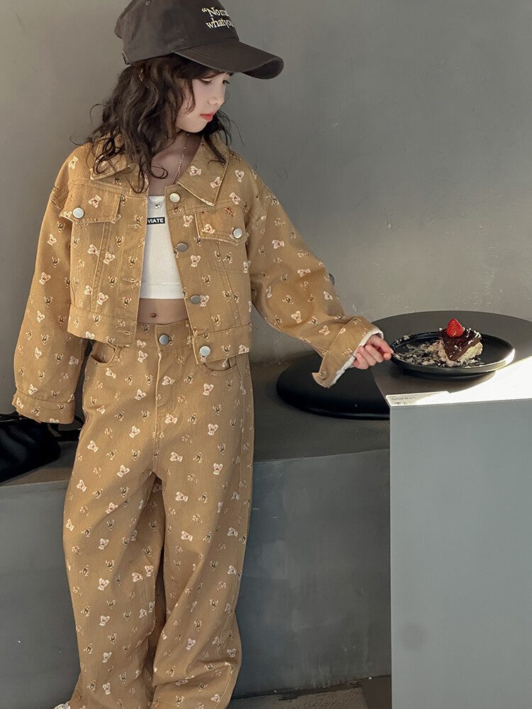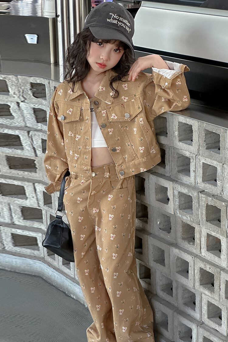 국경 간 어린이 봄 2024 년 새 소녀 세트 서양식 복고풍 한국식 워시 코튼 얇은 데님 투피스 세트