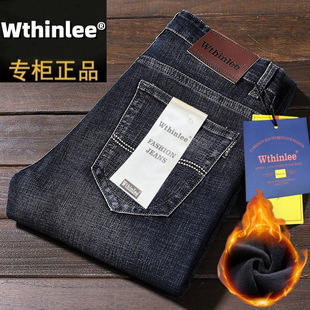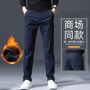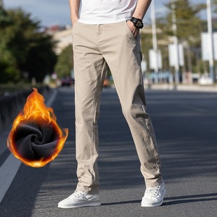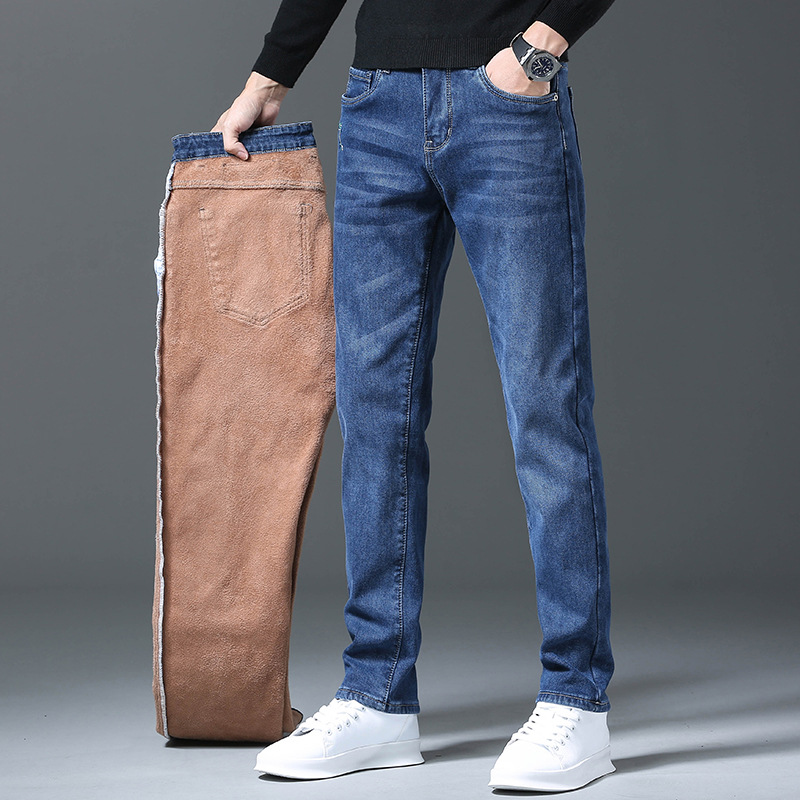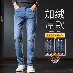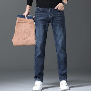 남성용 데님 팬츠 가을 겨울 기모 두꺼운 슬림핏 스트레이트 엘라스틱 캐주얼 팬츠 다용도 트렌디 자수 남성용 긴바지