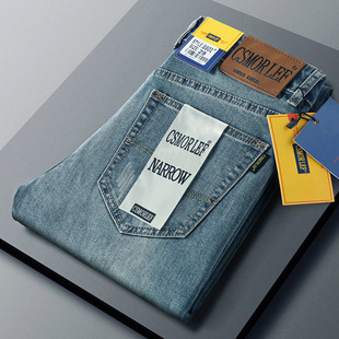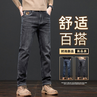 남성용 데님 팬츠 가을 겨울 기모 두꺼운 슬림핏 스트레이트 엘라스틱 캐주얼 팬츠 다용도 트렌디 자수 남성용 긴바지스토어 가기