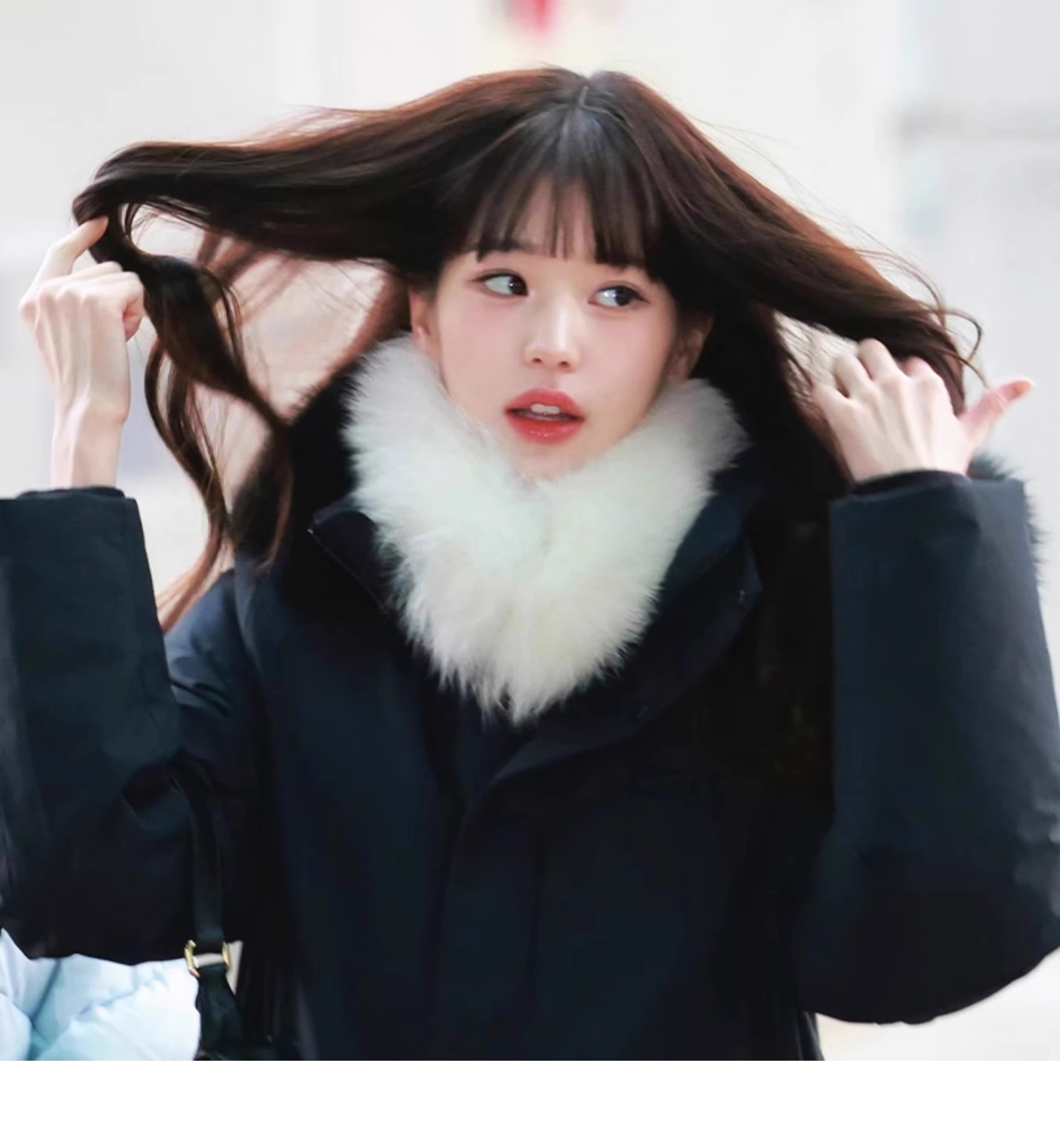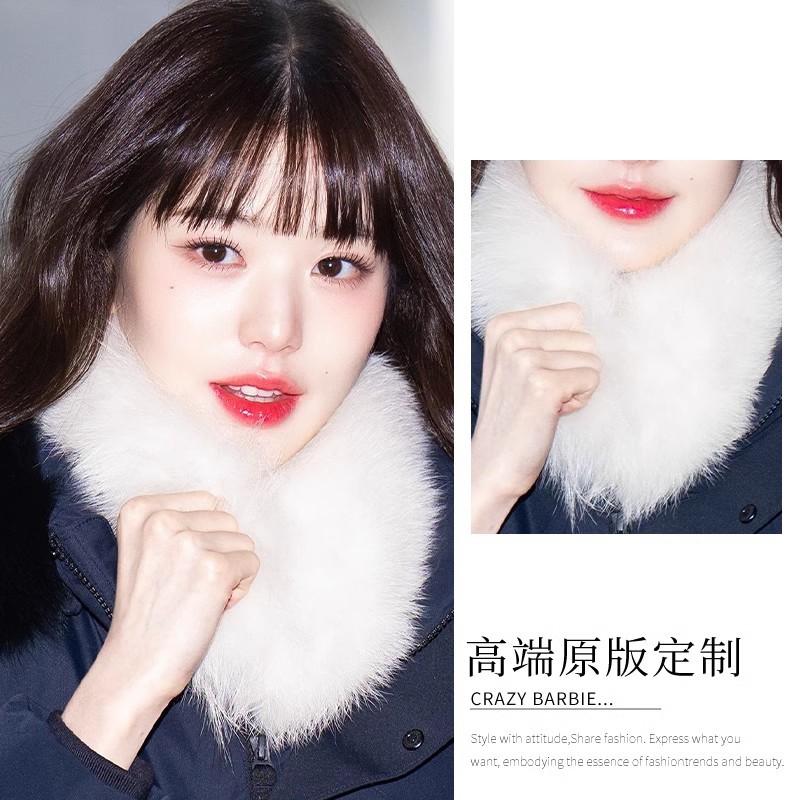 Zhang Yuanying 같은 스타일 화이트 가짜 폭스 모피 따뜻한 스카프 여자의 겨울 모피 칼라 자석 스카프 한국 스타일