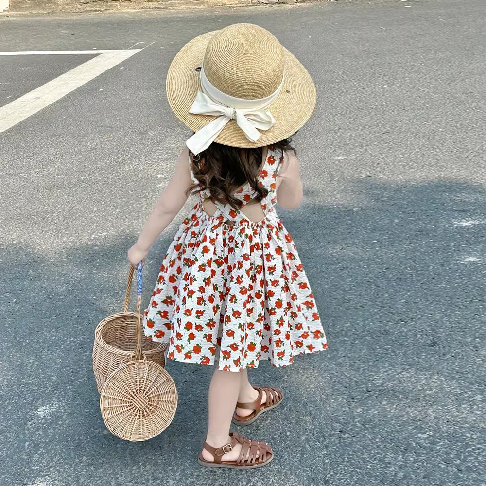 소녀 서스펜더 스커트 여름 새로운 달콤한 꽃 크로스 조끼 어린이를위한 비치 공주 원피스 원피스 배달스토어 가기