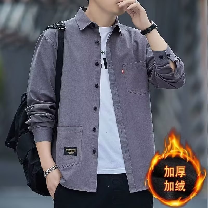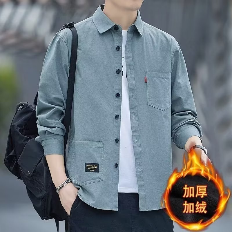 2023 새로운 느슨한 캐주얼 남성 긴팔 셔츠 복고풍 코트 겨울 플러스 사이즈 다재다능한 기모 두꺼운 셔츠스토어 가기