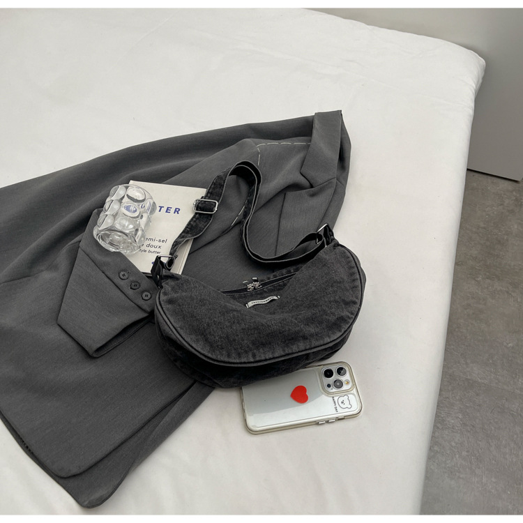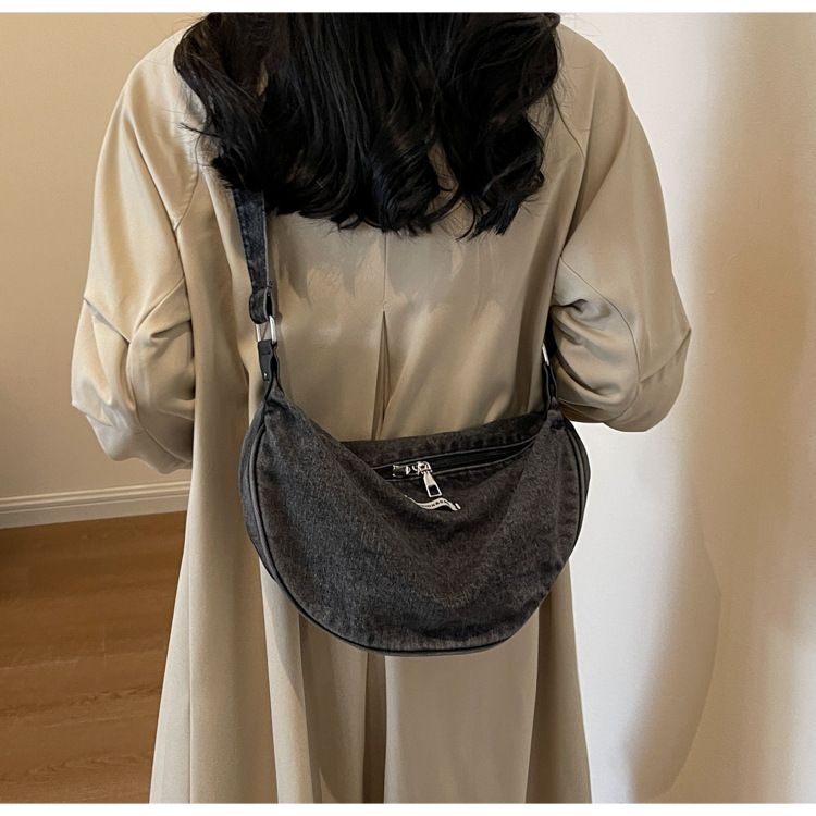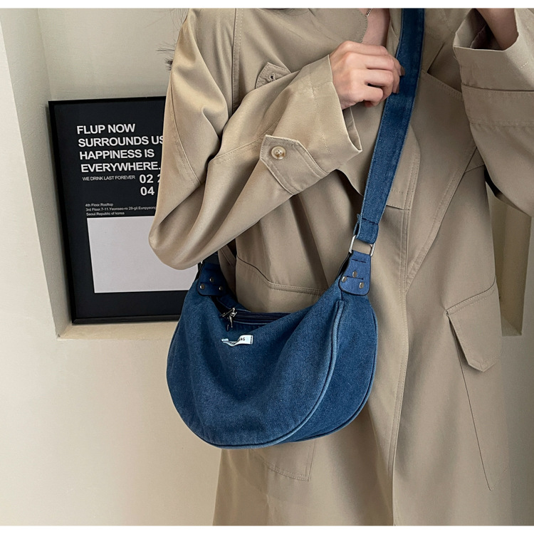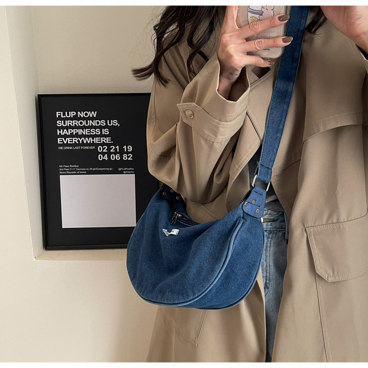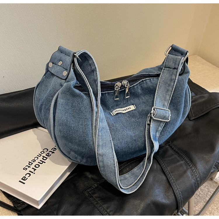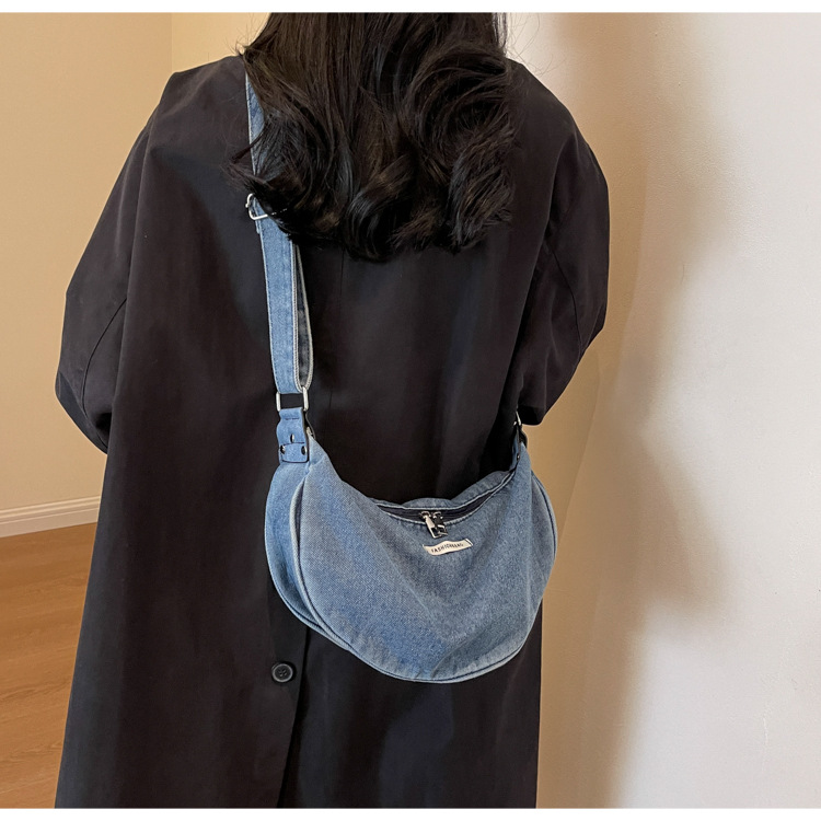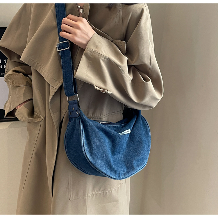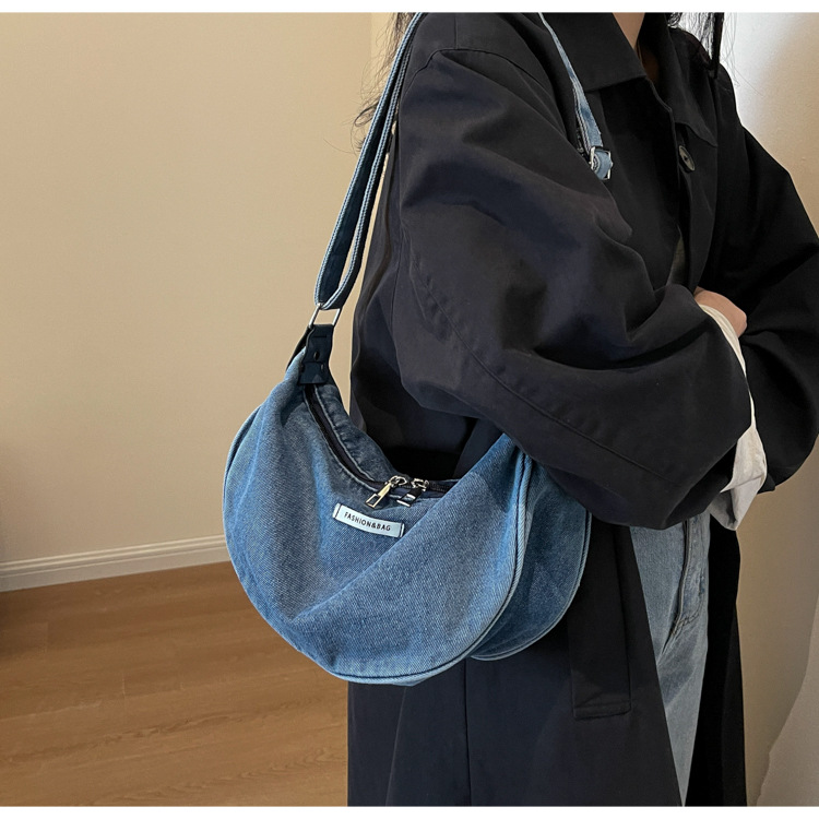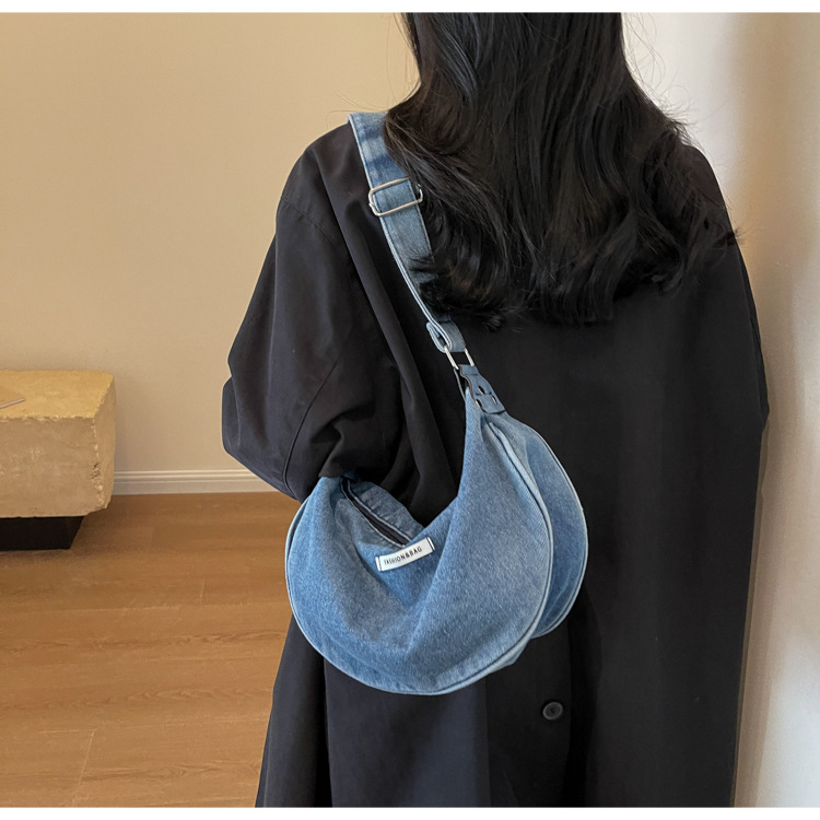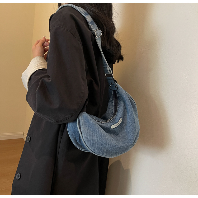 데님 만두 가방 여성 캐주얼 스포츠 스타일 크로스 바디 백 대용량 캔버스 가방 학생 클래스 어깨 가방 트렌디