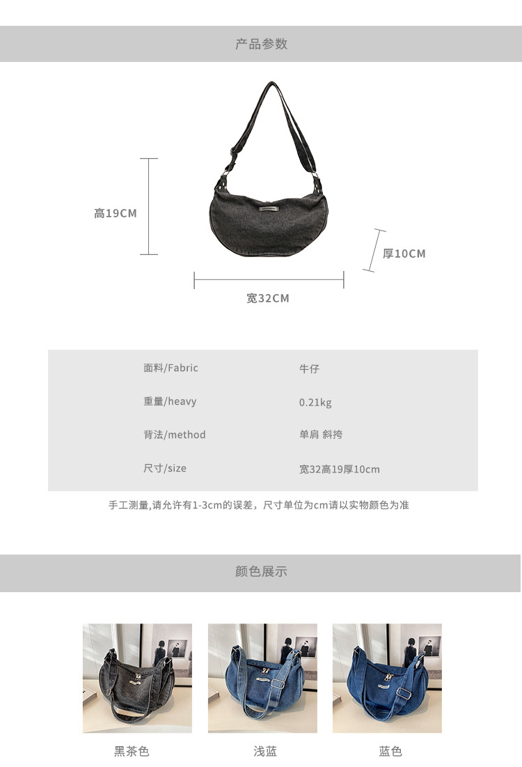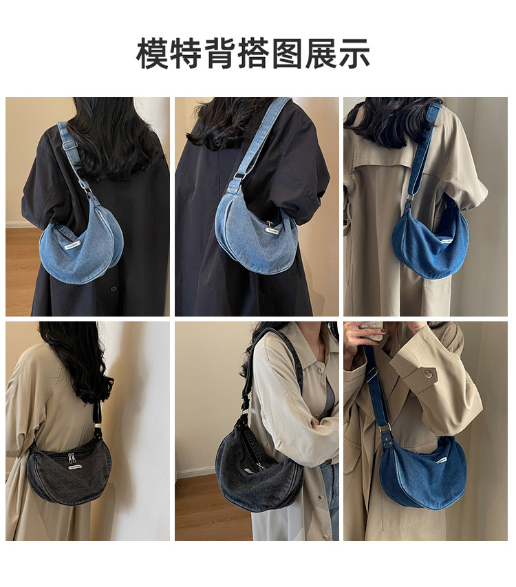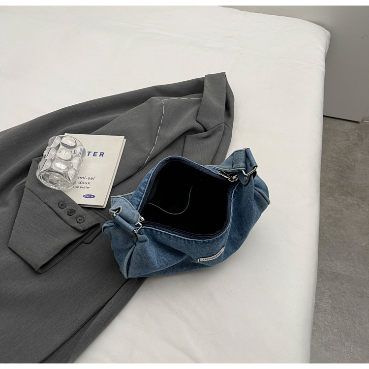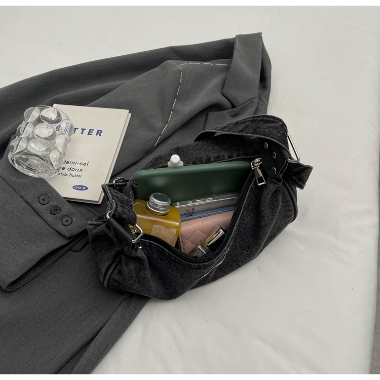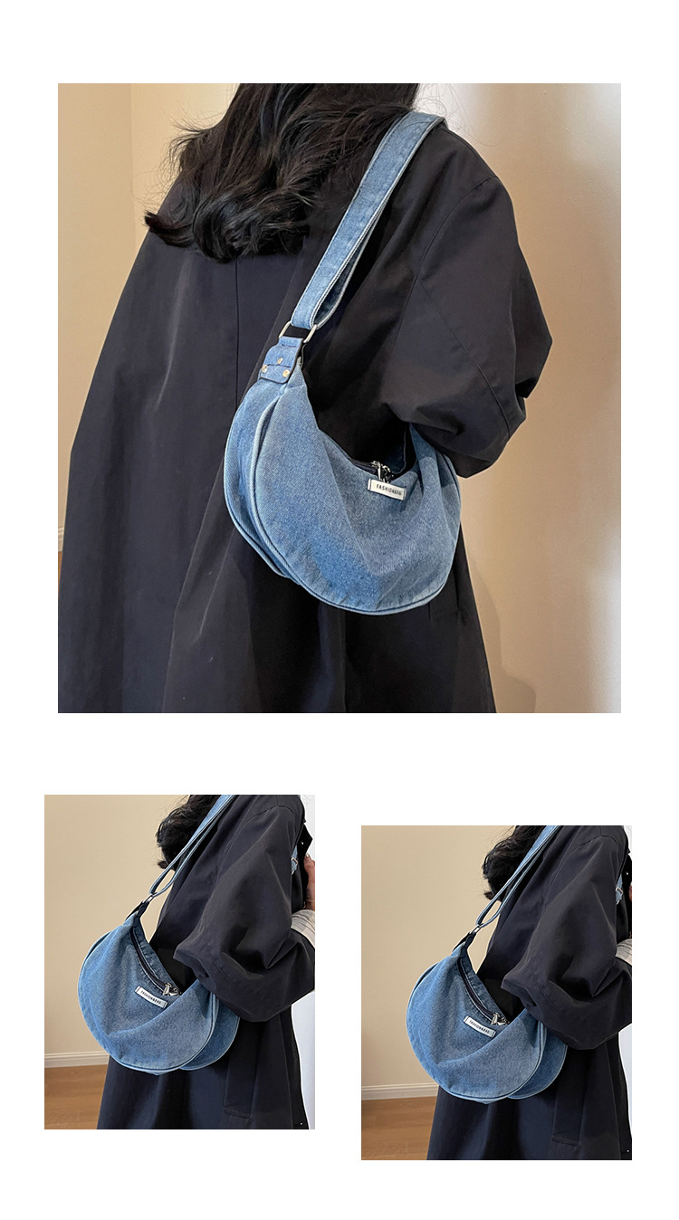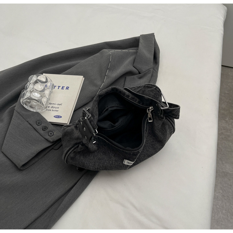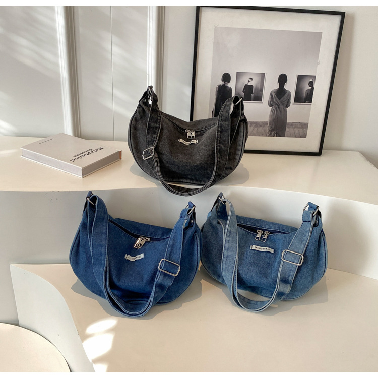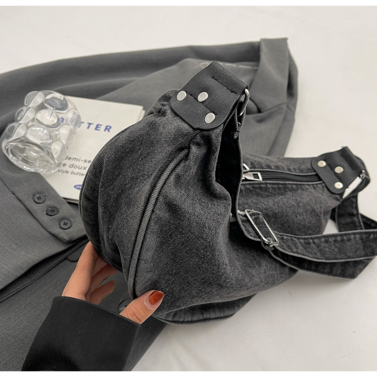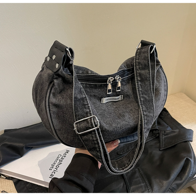 데님 만두 가방 여성 캐주얼 스포츠 스타일 크로스 바디 백 대용량 캔버스 가방 학생 클래스 어깨 가방 트렌디