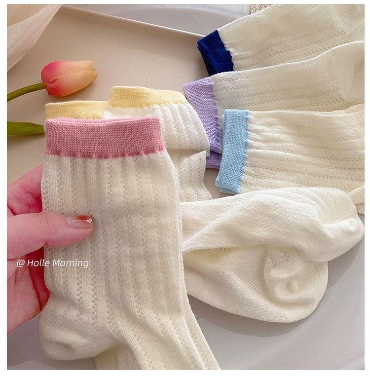 여성 여름 얇은 메쉬 중반 송아지 양말 시원한 통기성 여름 인 스타일 착용 유백색 스타킹 컬러 매칭