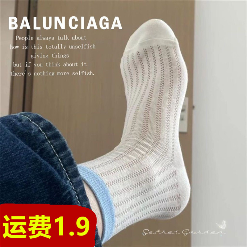여성 여름 얇은 메쉬 중반 송아지 양말 시원한 통기성 여름 인 스타일 착용 유백색 스타킹 컬러 매칭스토어 가기