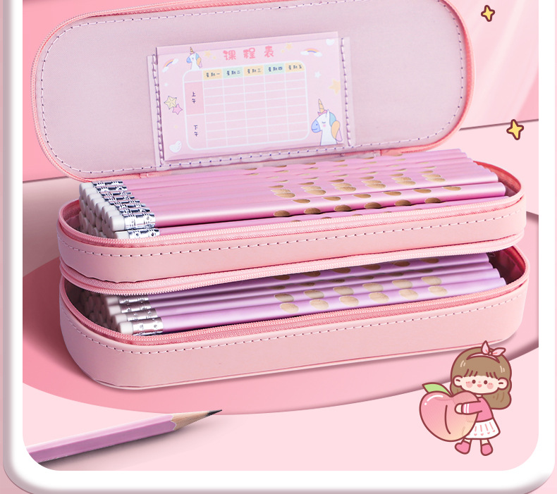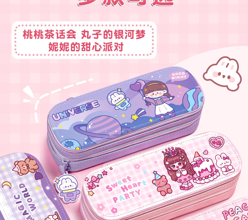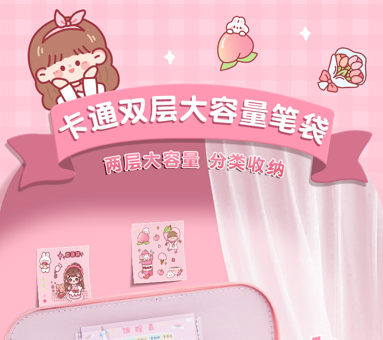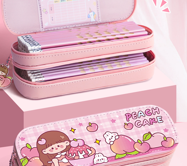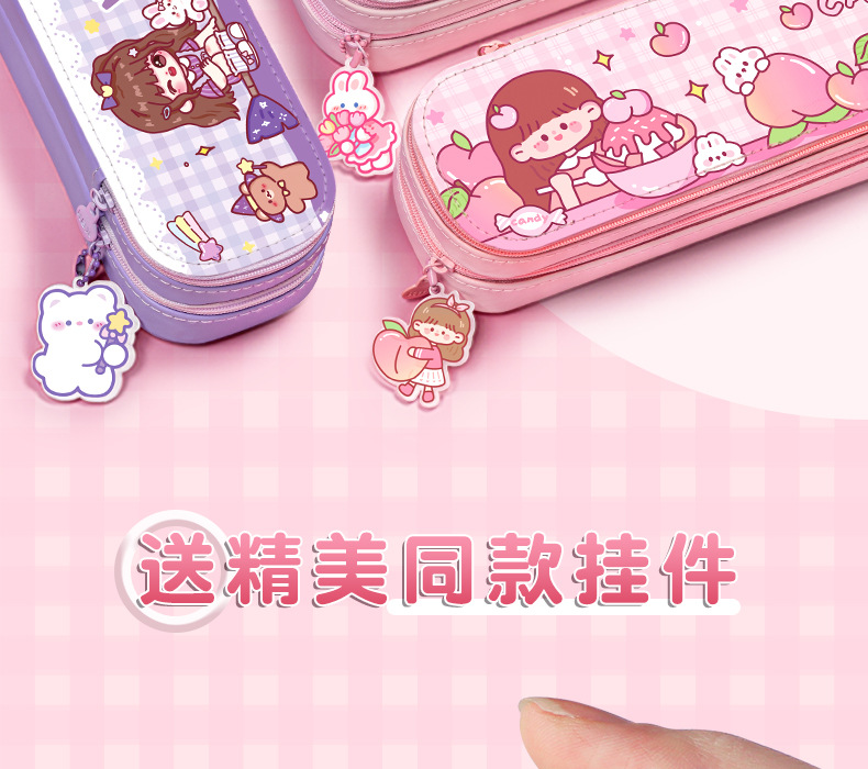 카바 베어 더블 레이어 연필 가방 높은 가치의 대용량 문구 가방 간단한 Instagram 스타일 귀여운 멀티 레이어 소녀 초등학생