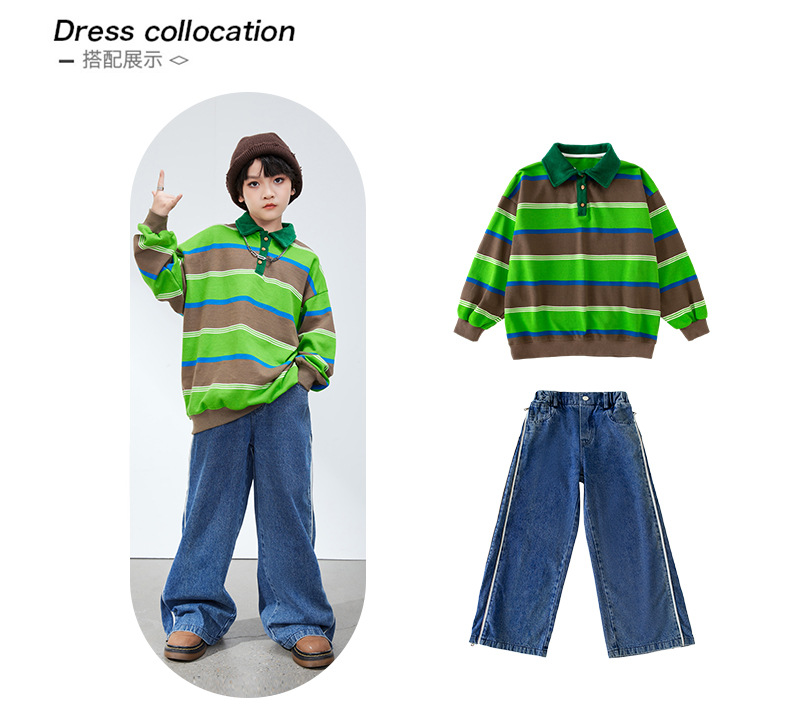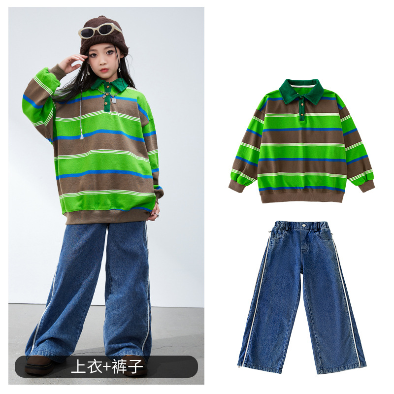 • 8330 녹색 줄무늬 셔츠 + 7038 청바지