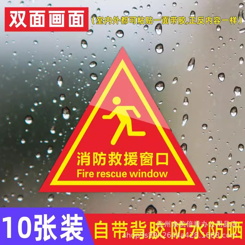 양면 화재 구조 창 표지판 경고 스티커 자체 접착 유리 스티커 양면 화재 구조 창 로고 스티커
