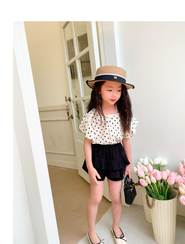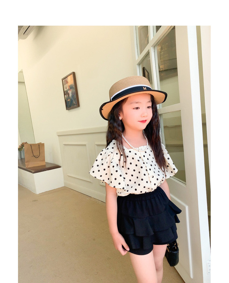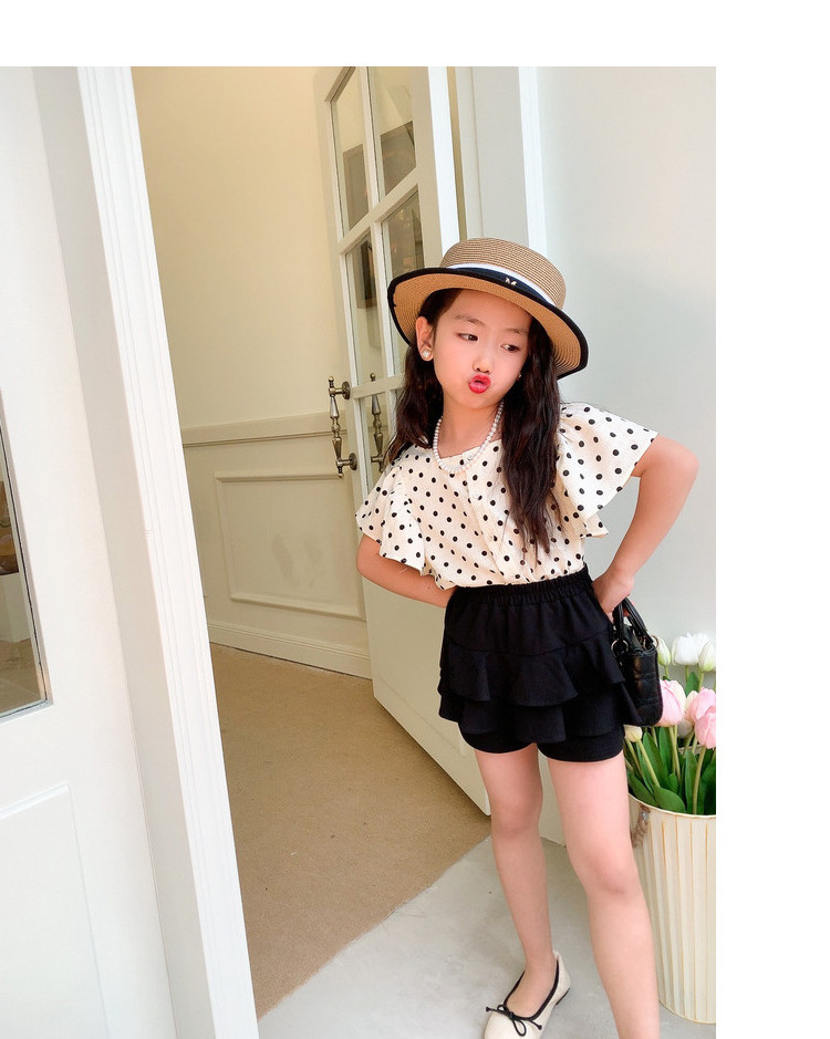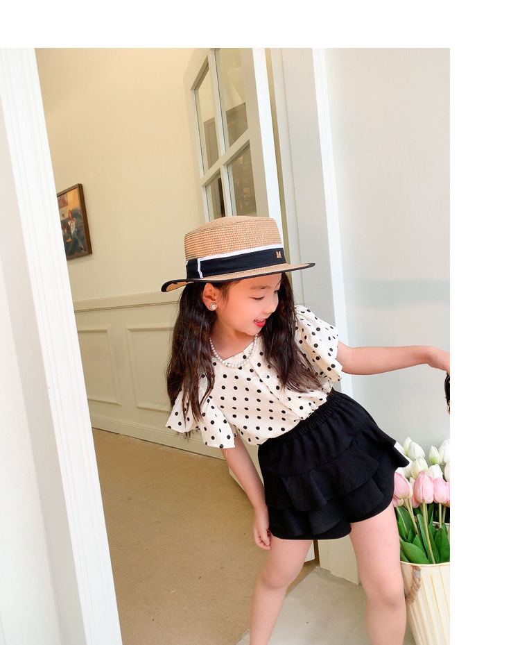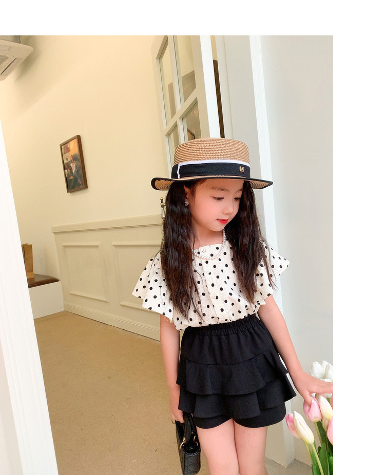 소녀들의 세트 여름 새로운 달콤한 폴카 도트 퍼프 슬리브 탑 + 퀼로트 2 피스 세트