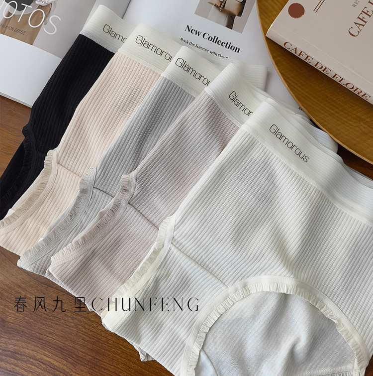 순수한 사랑에 빠지다 5A 항균 아기 면화 | 4 무료 1 면 가랑이 간단한 얇은 통기성 원활한 미드 허리 여성 속옷스토어 가기