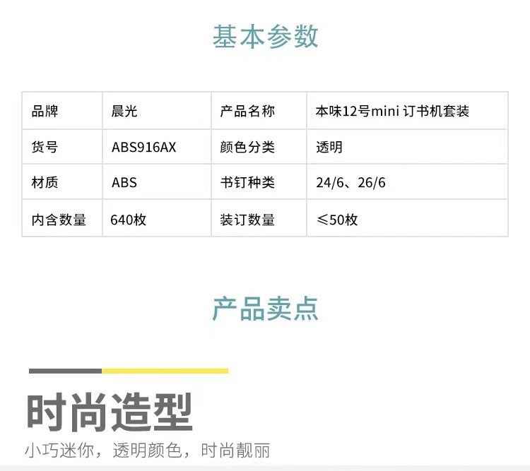 Chenguang 916AX 원래 미니 스테이플러 투명 12 번 스테이플러 세트 휴대용 사무실스토어 가기