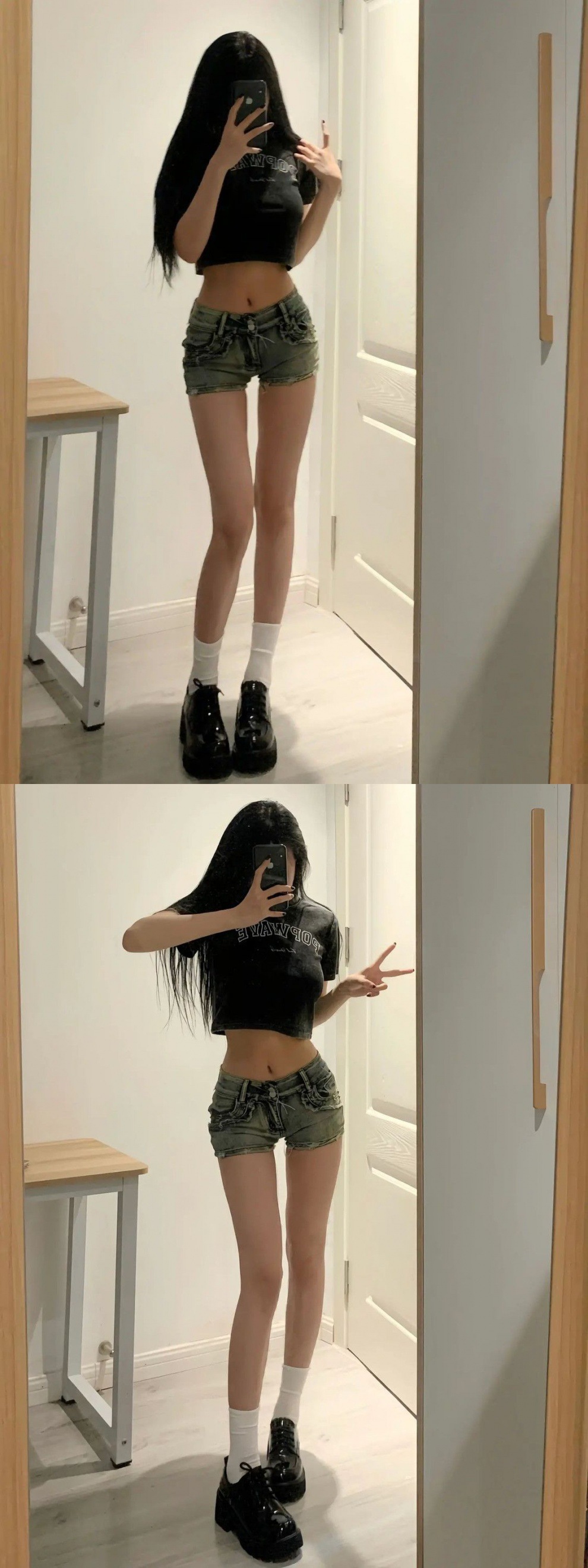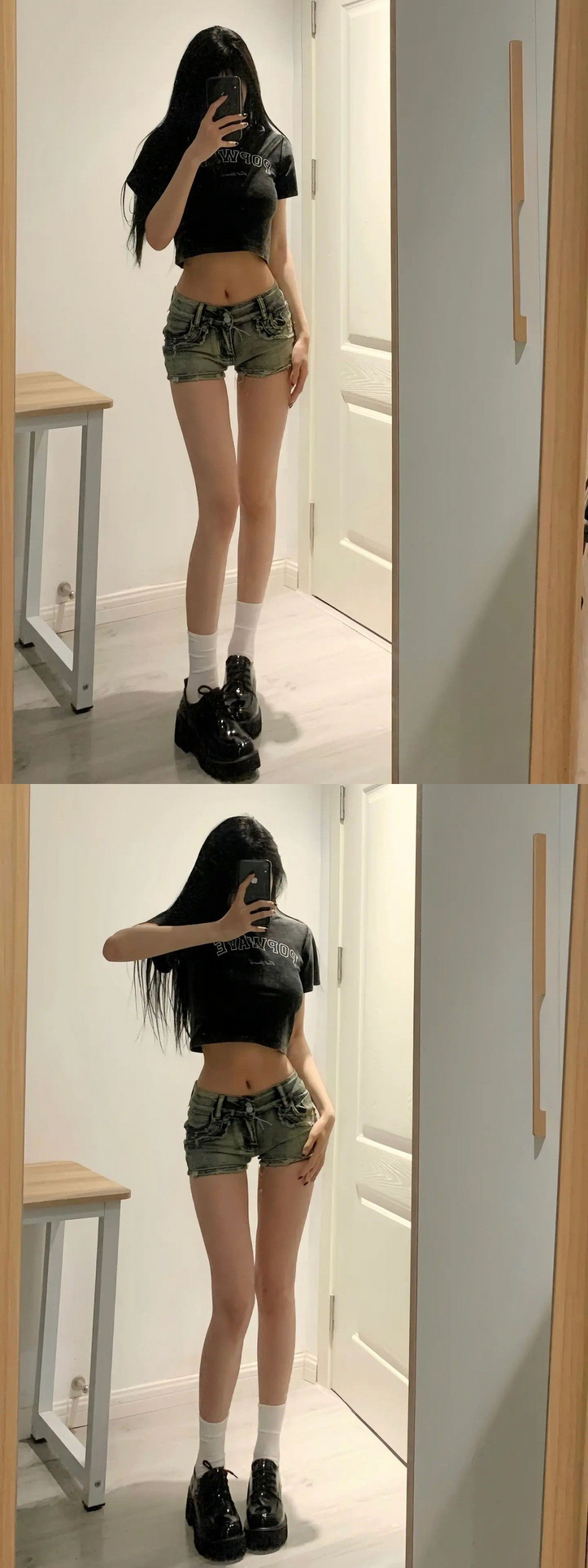 허리가 낮은 바지 짧은 미국 핫 걸 Liu Ding, 2024 년 봄과 여름에 데님 새로운 근접 슬리밍 백 엉덩이 와이드 레그 핫 공급스토어 가기