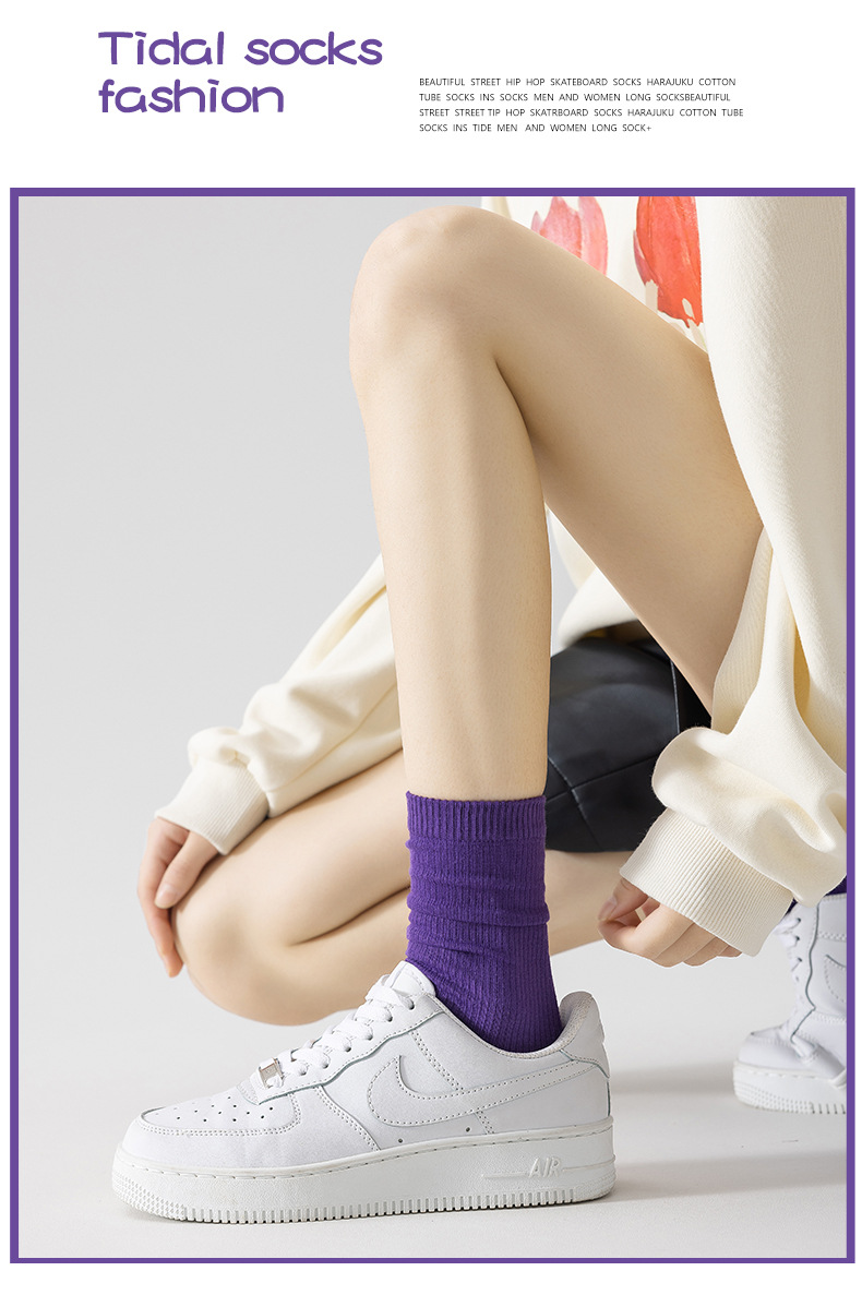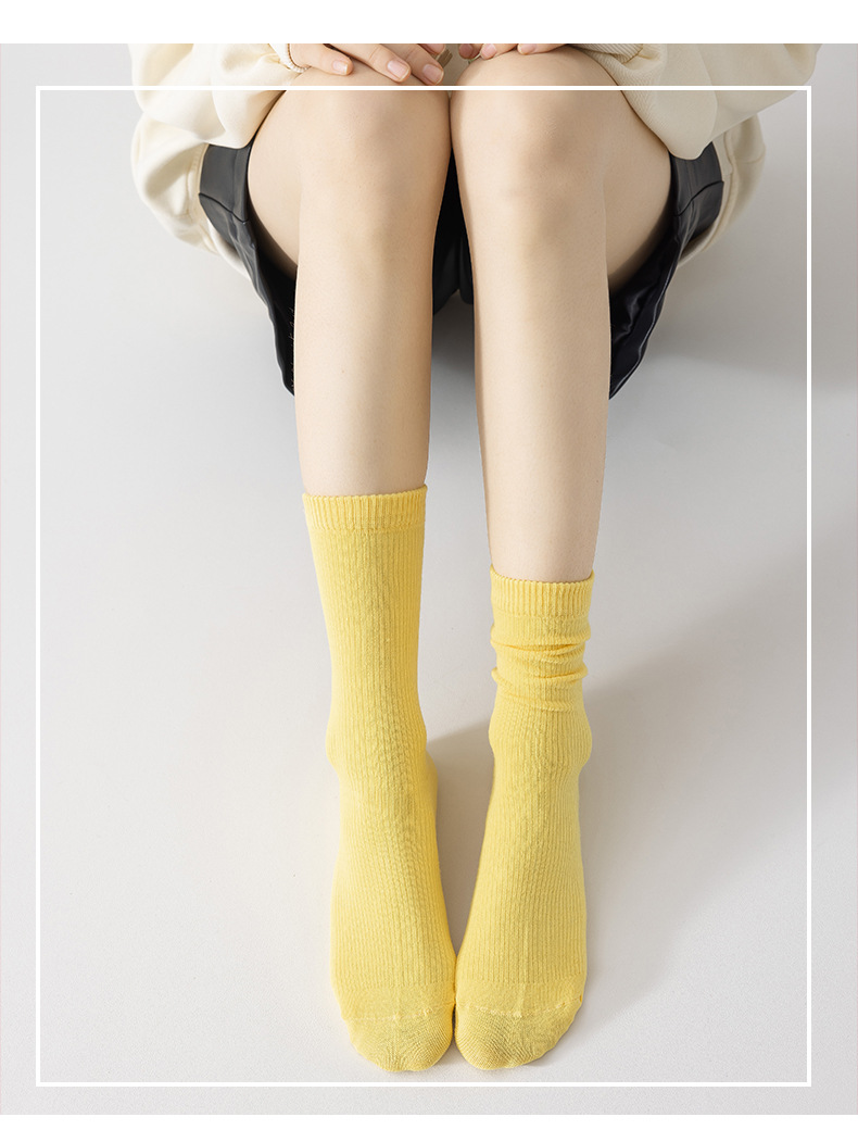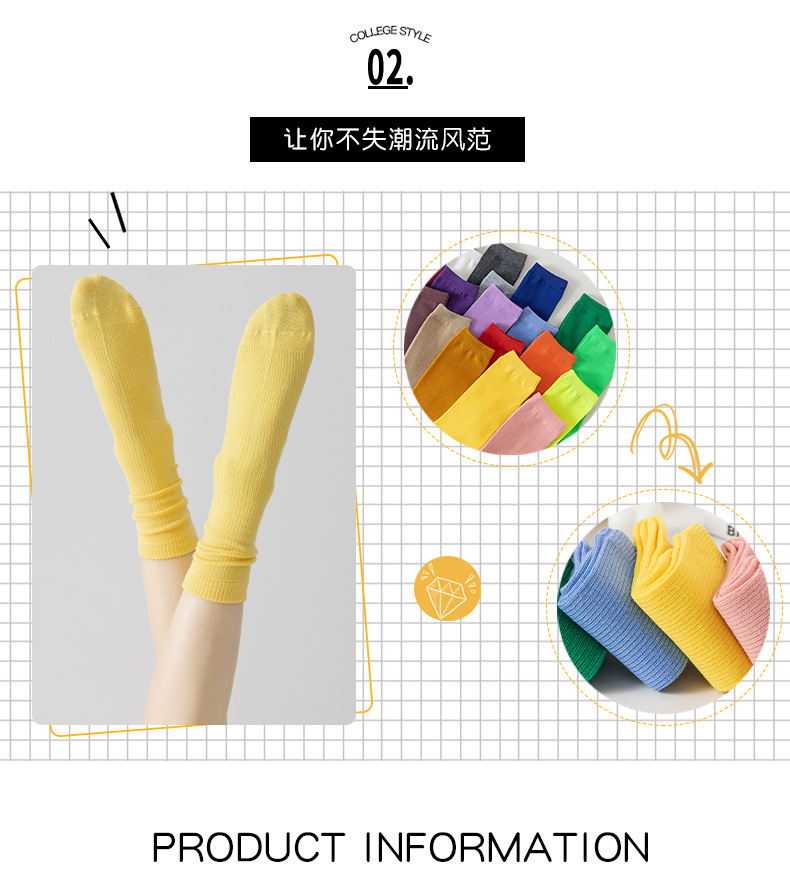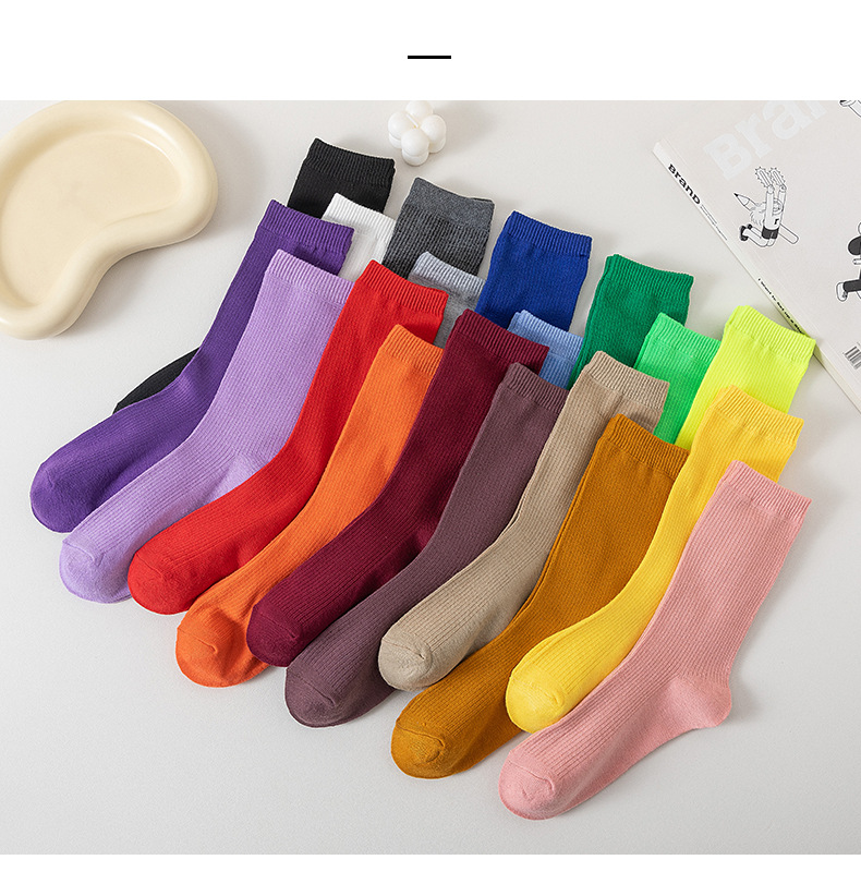 단색 양말 아동면 미드 튜브 양말 봄, 여름, 가을, 겨울 줄무늬 여성 스타킹 Zhuji 캔디 인면 양말 도매스토어 가기