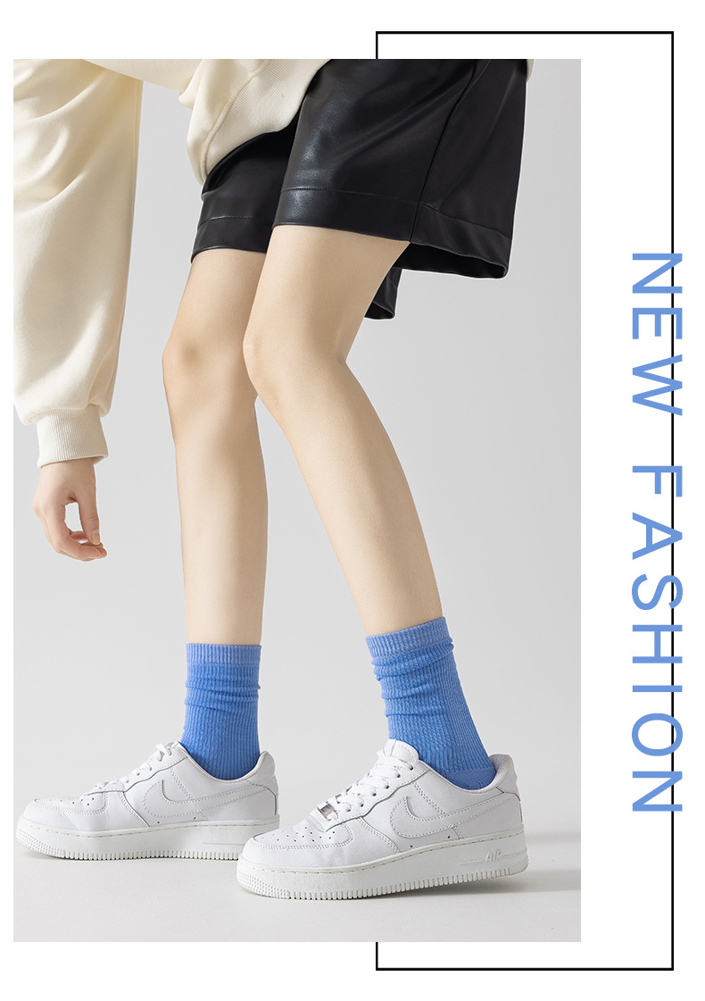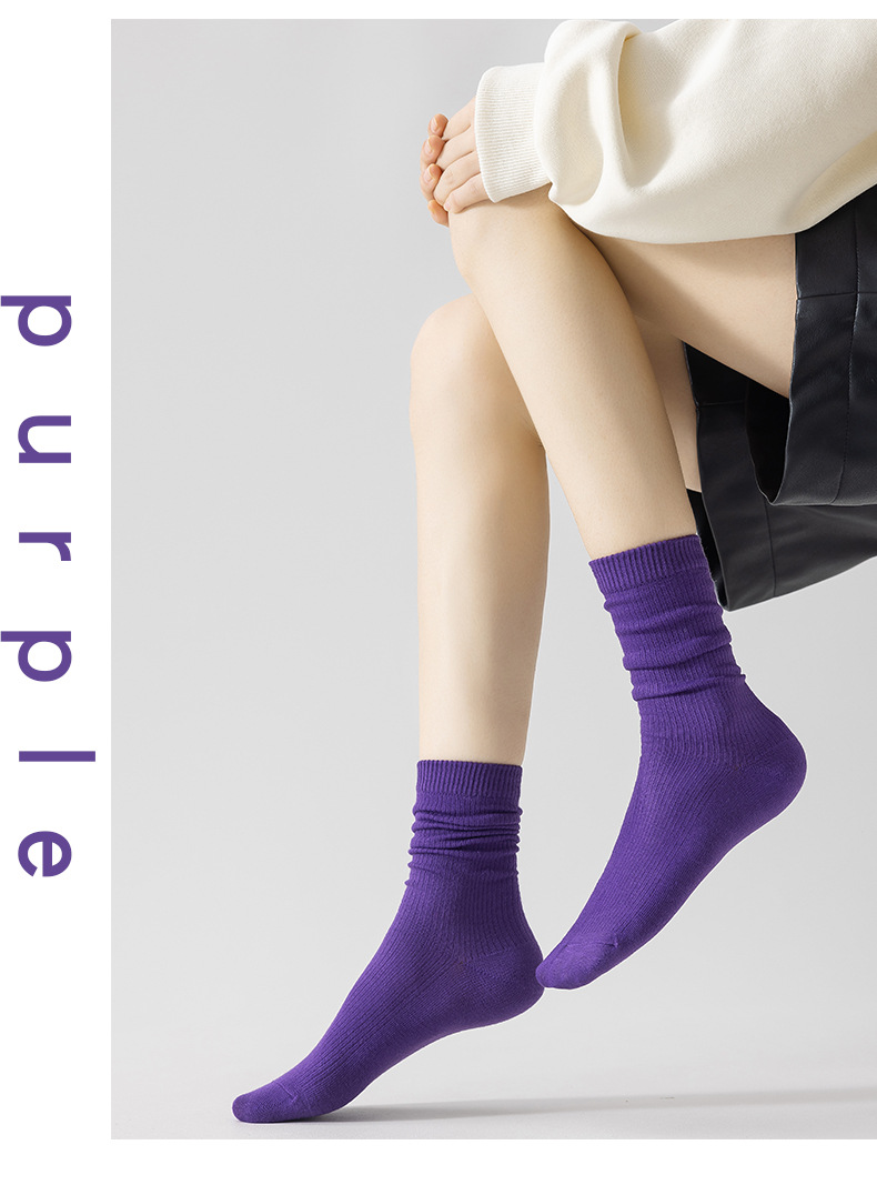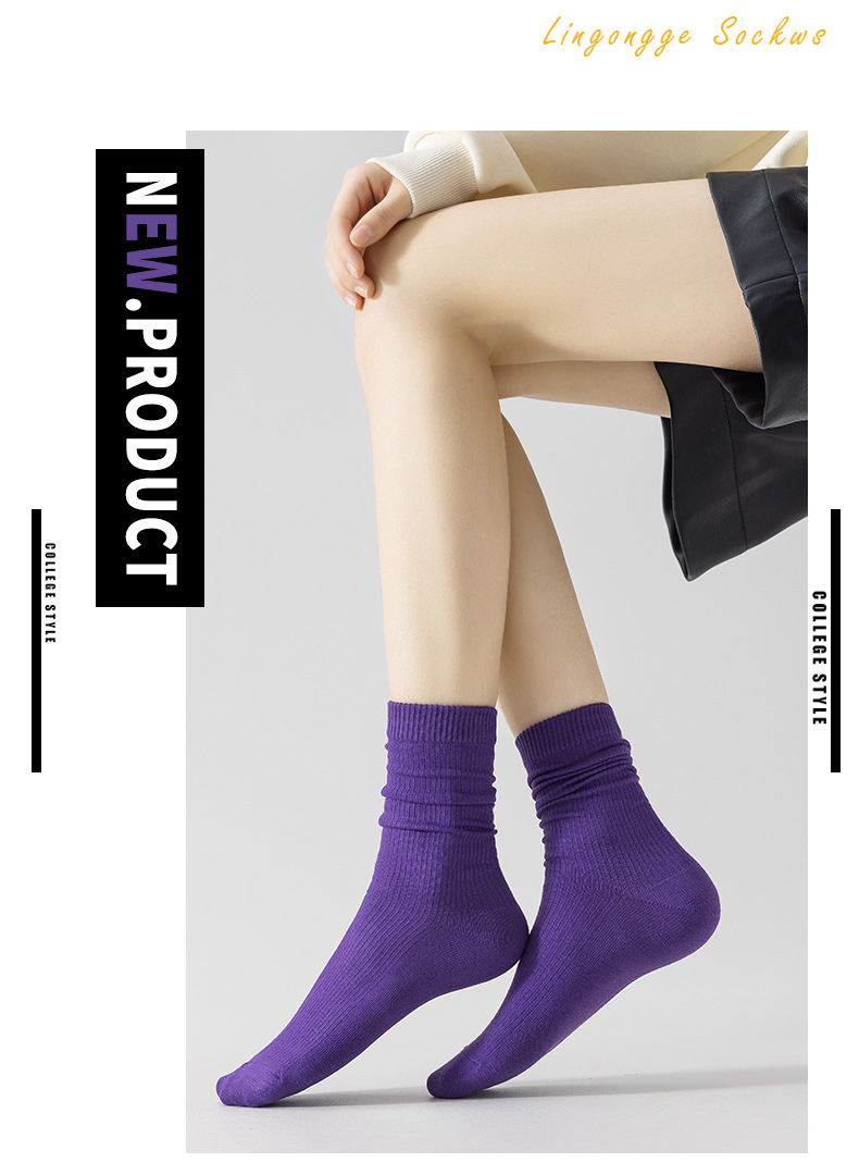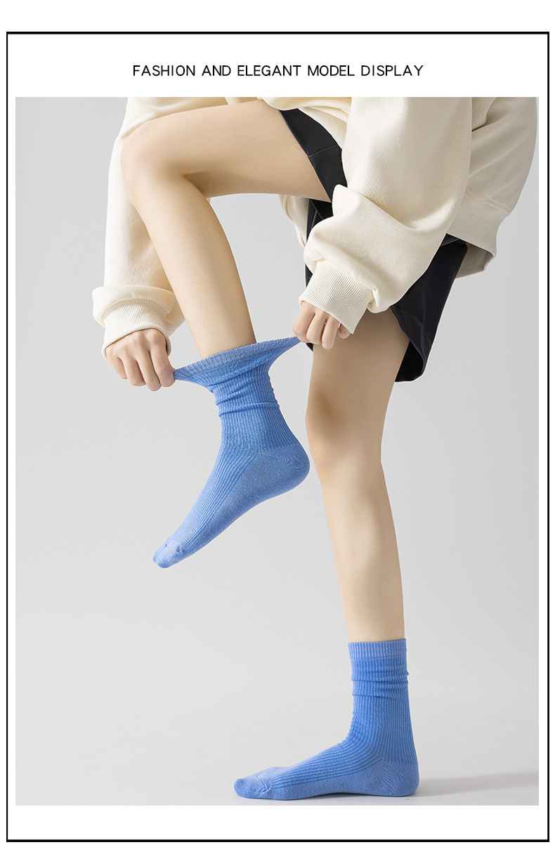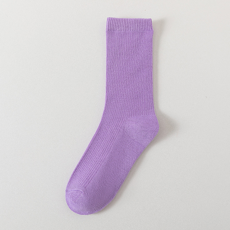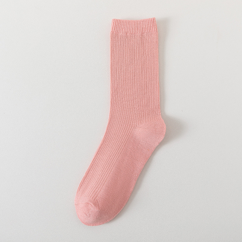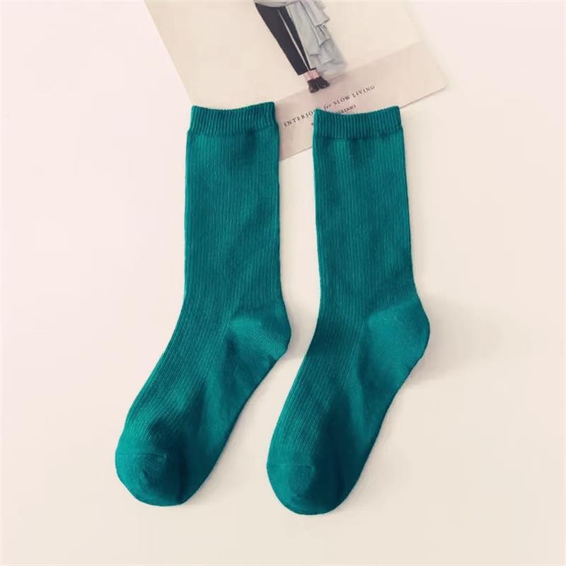 단색 양말 아동면 미드 튜브 양말 봄, 여름, 가을, 겨울 줄무늬 여성 스타킹 Zhuji 캔디 인면 양말 도매