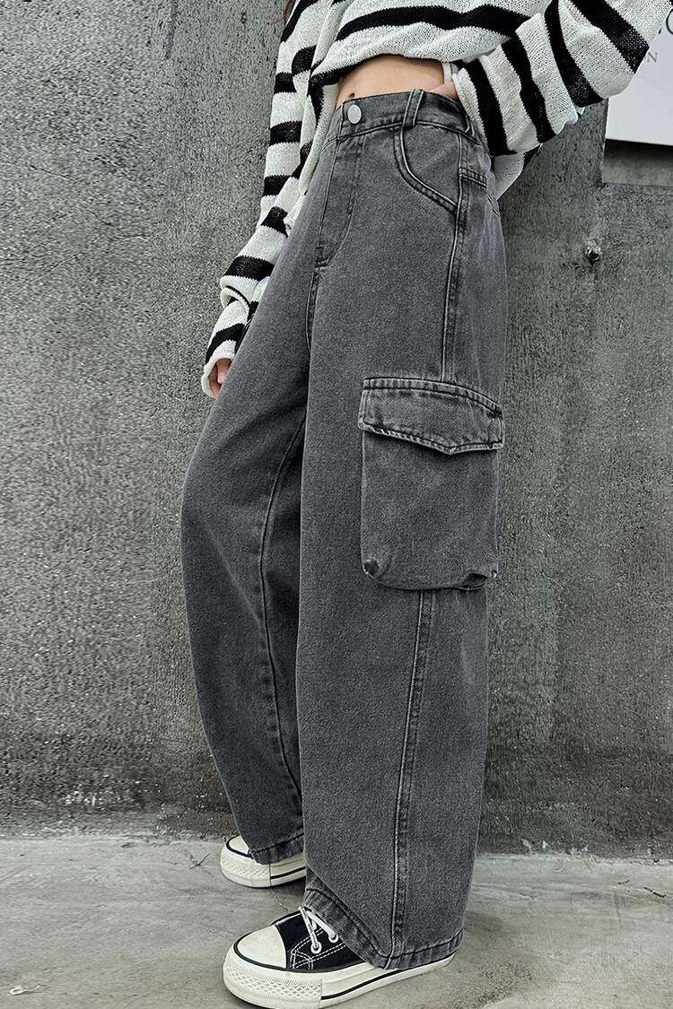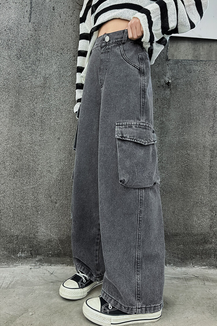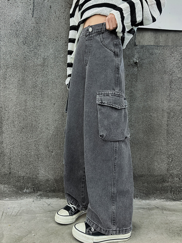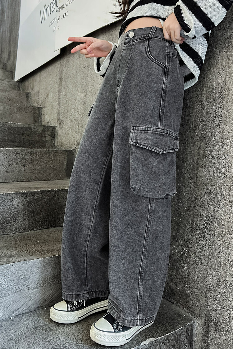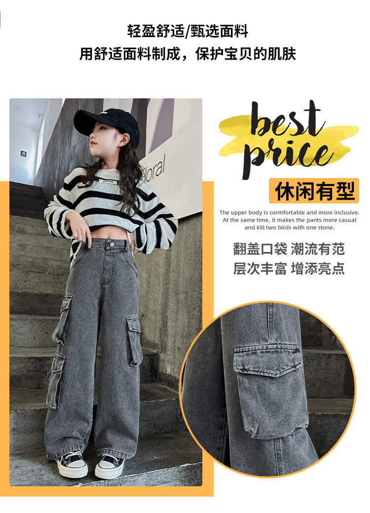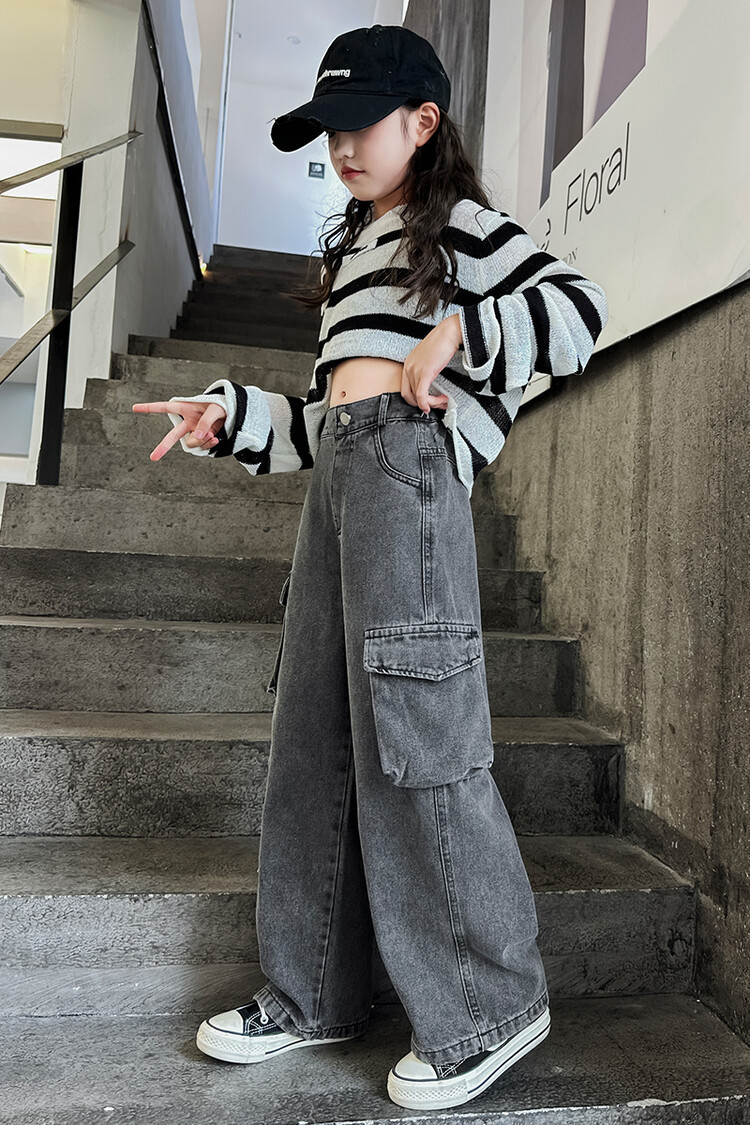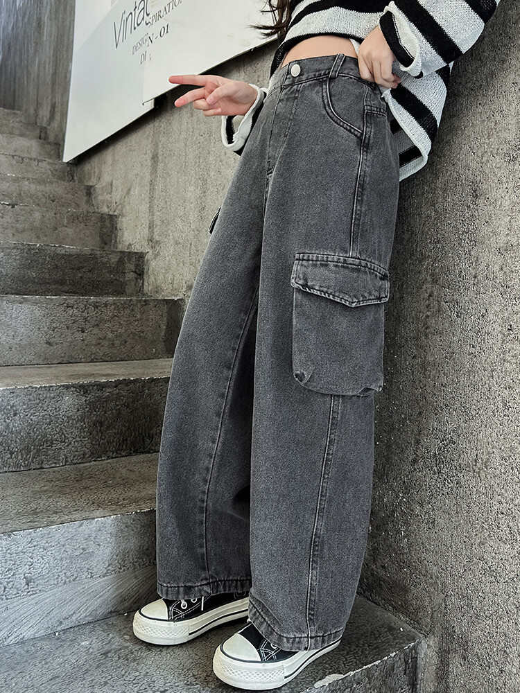 대외 무역 아동복 바지 도매 2025 새로운 스타일 소녀 작업복 청바지 유행 봄, 가을 큰 어린이 넓은 다리 바지스토어 가기