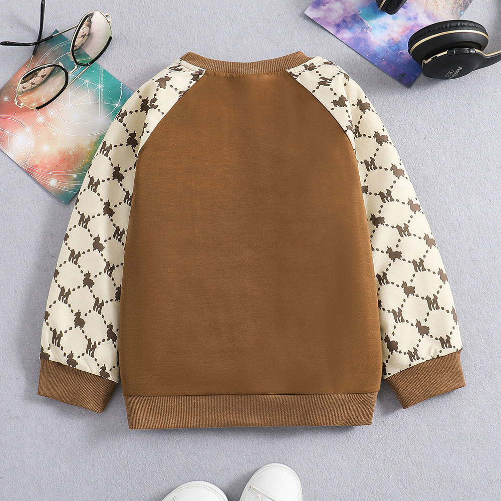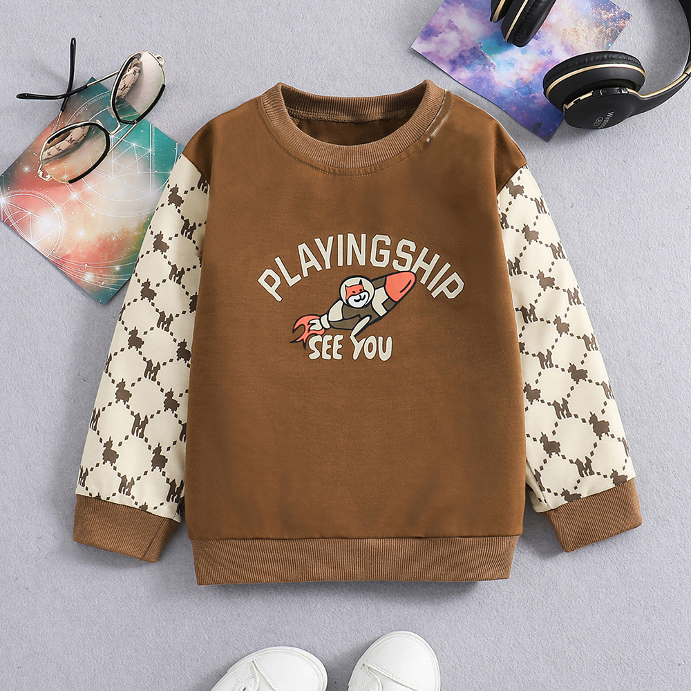 소년 스웨터 2024 봄 대외 무역 서양식 스티칭 어린이 스웨터 만화 인쇄 컬러 매칭 격자 무늬 소매 아동복스토어 가기