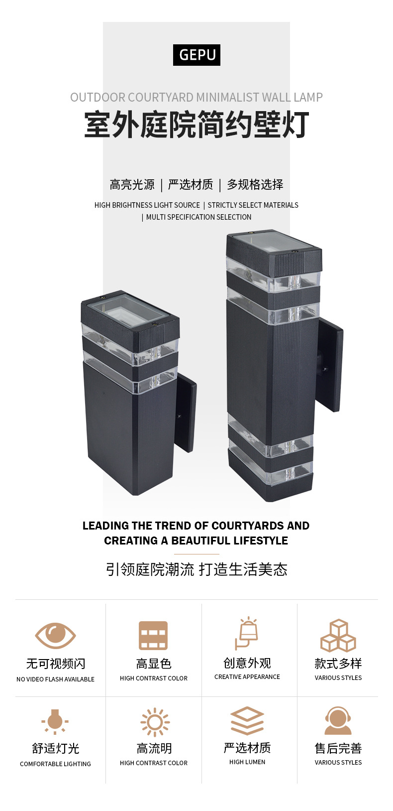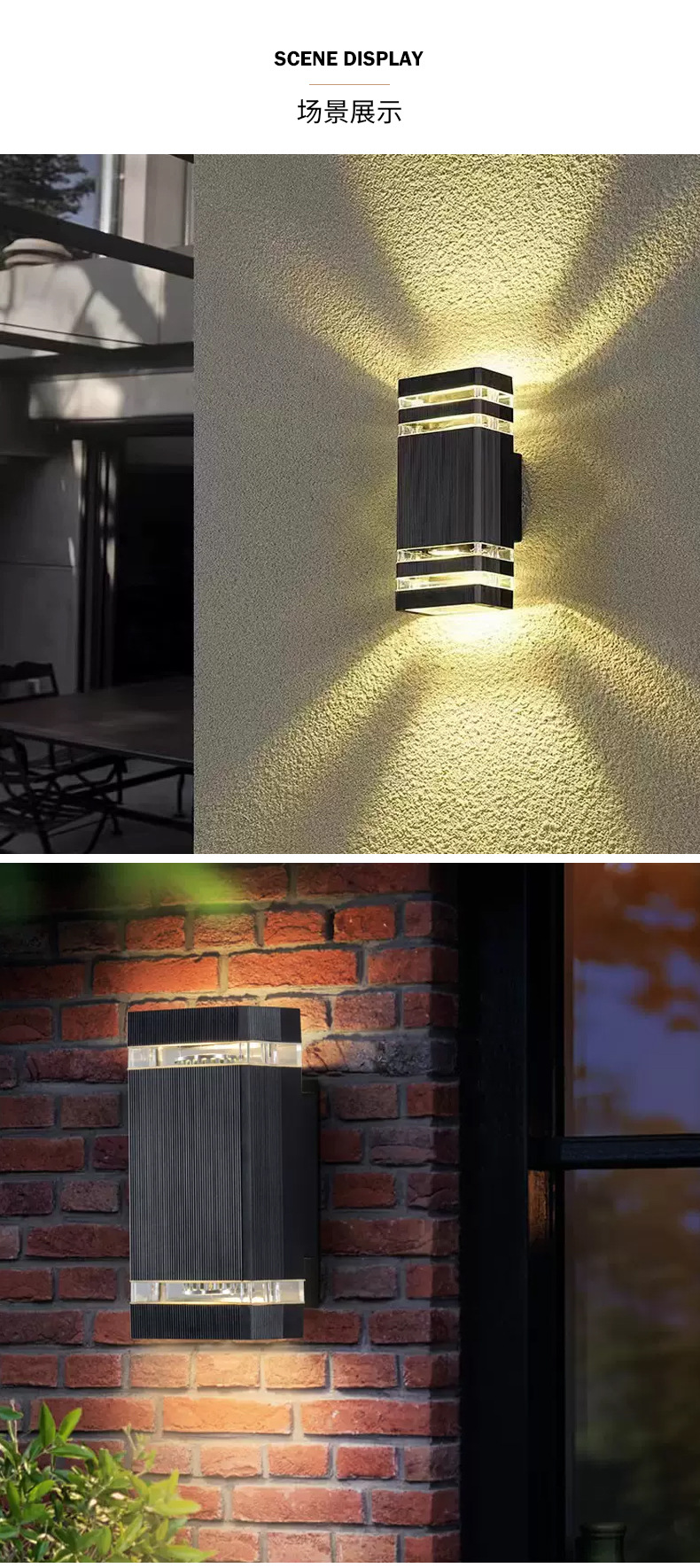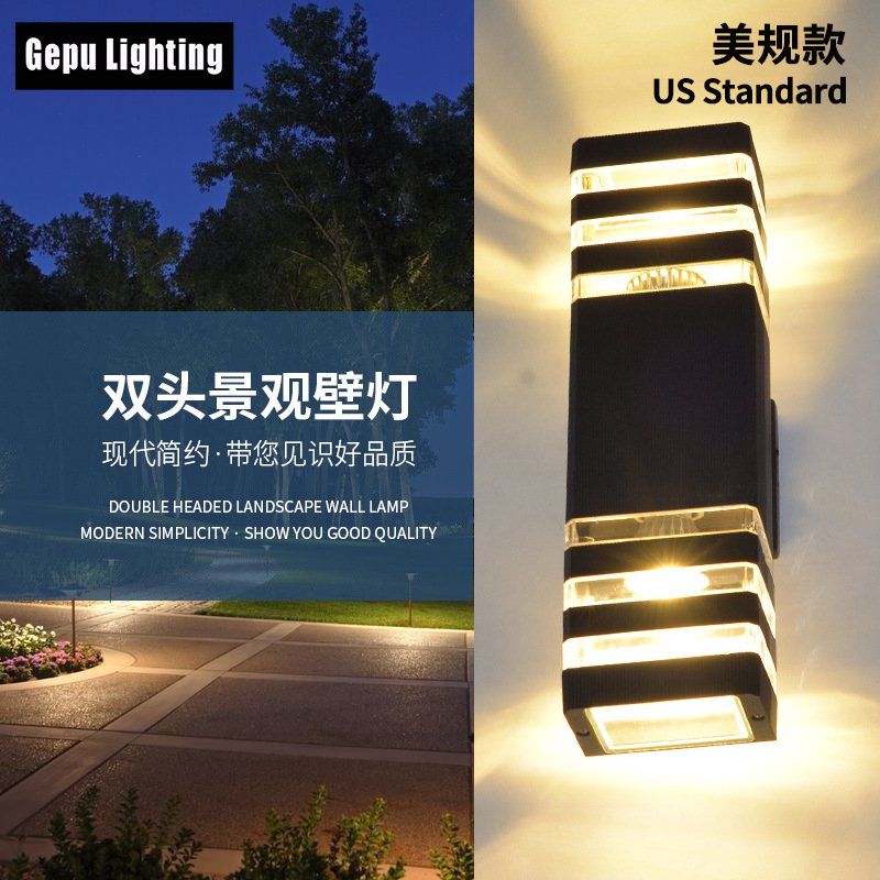 야외 방수 벽 램프 더블 헤드 위아래로 빛나는 정원 램프 조명 제어 유도 방습 방수 직사각형 벽 교수형 램프스토어 가기