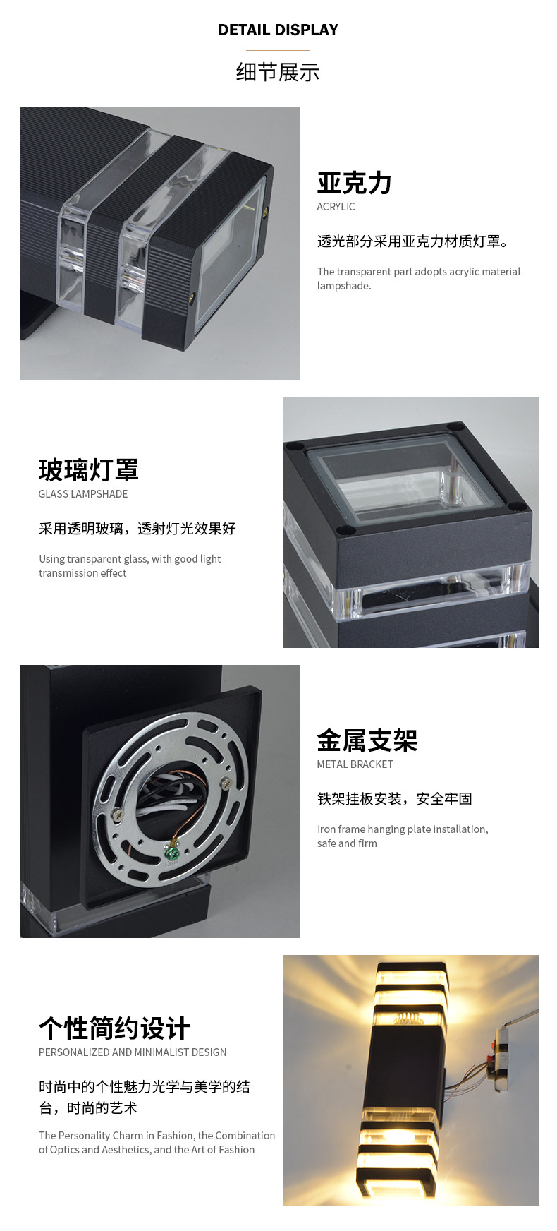 야외 방수 벽 램프 더블 헤드 위아래로 빛나는 정원 램프 조명 제어 유도 방습 방수 직사각형 벽 교수형 램프