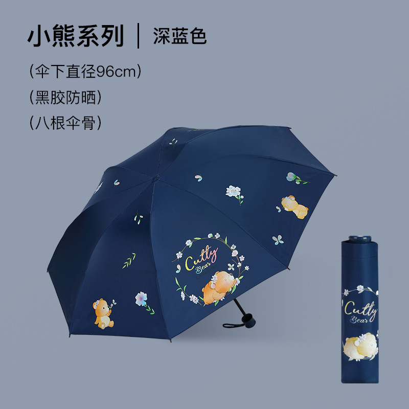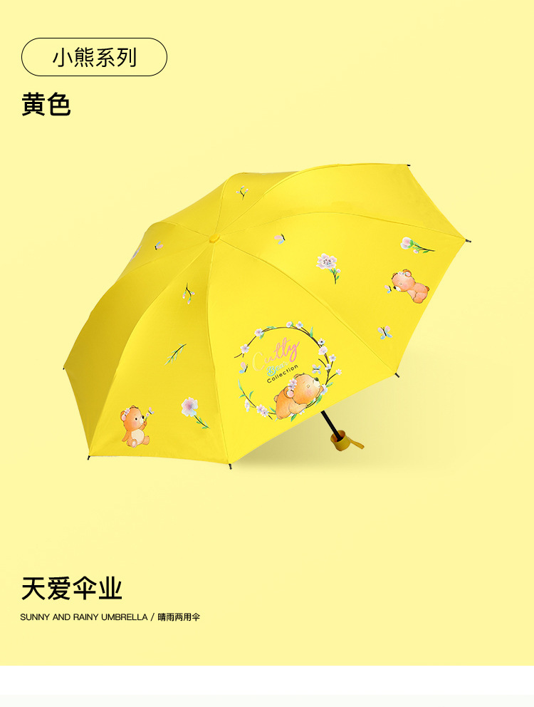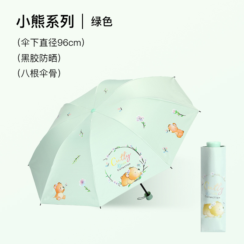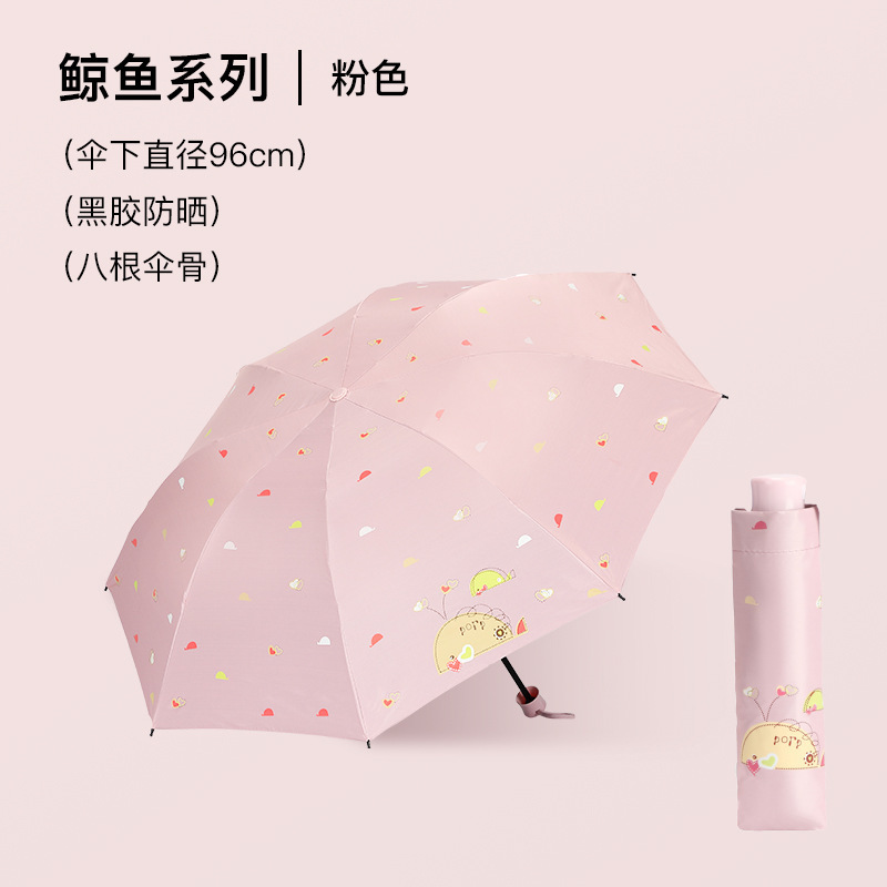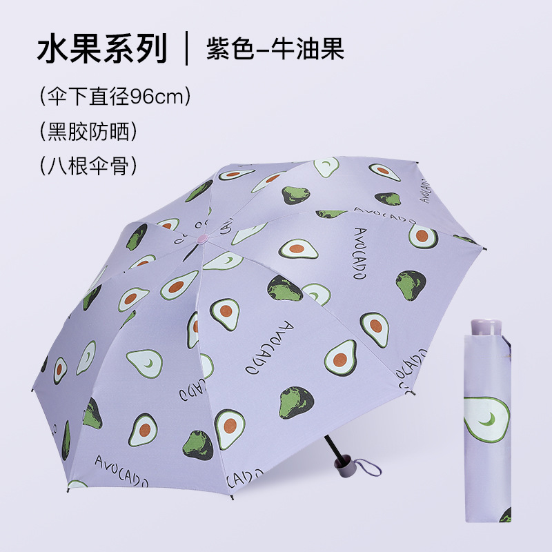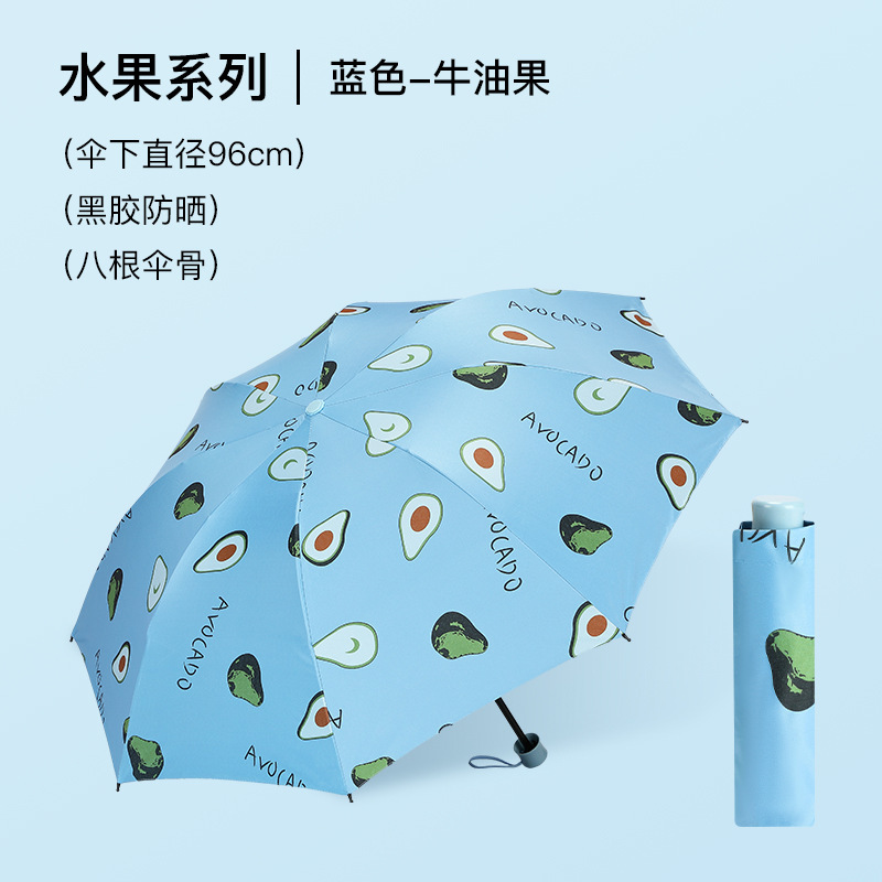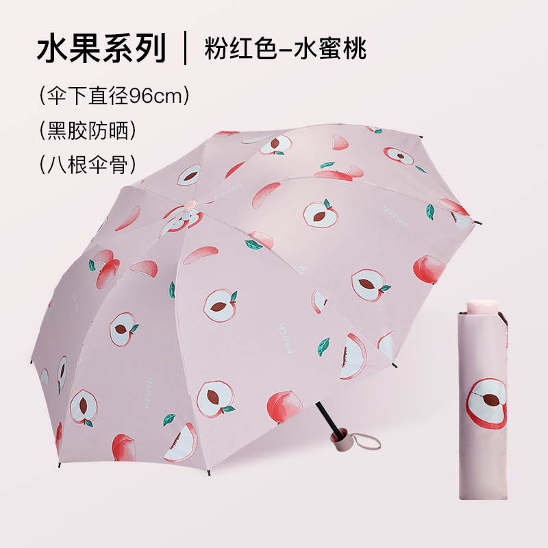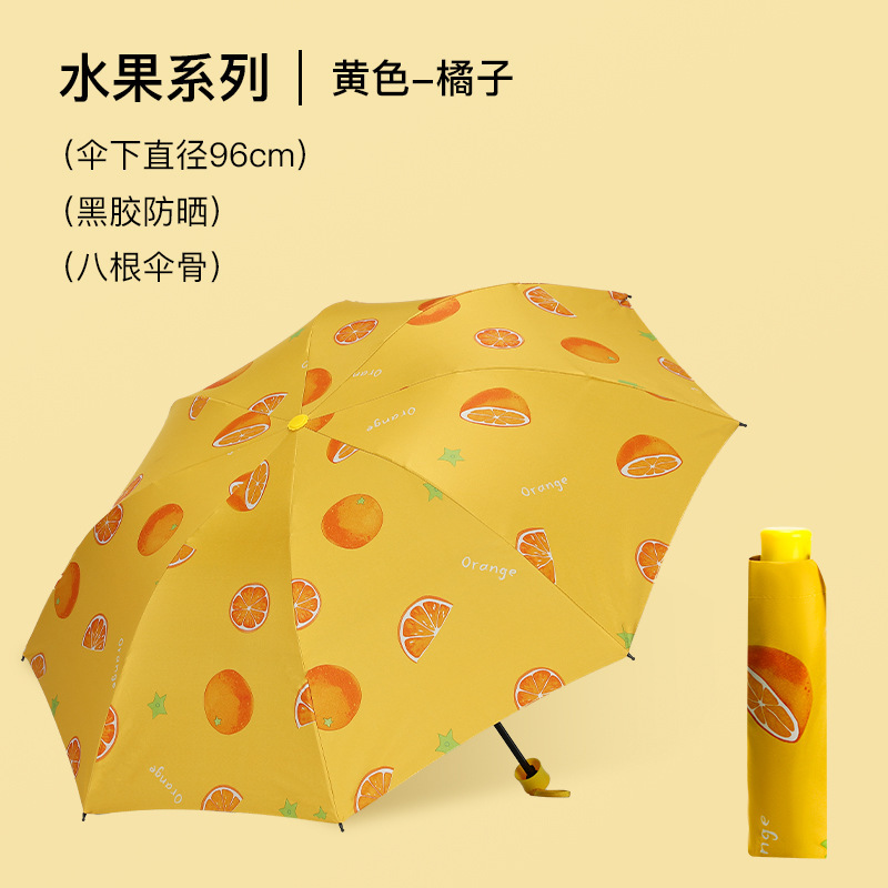 우산 공장 도매 손으로 열 과일 만화 우산 접이식 검은 접착제 태양 보호 태양 그늘 비 이중 사용 태양 우산 내구성스토어 가기