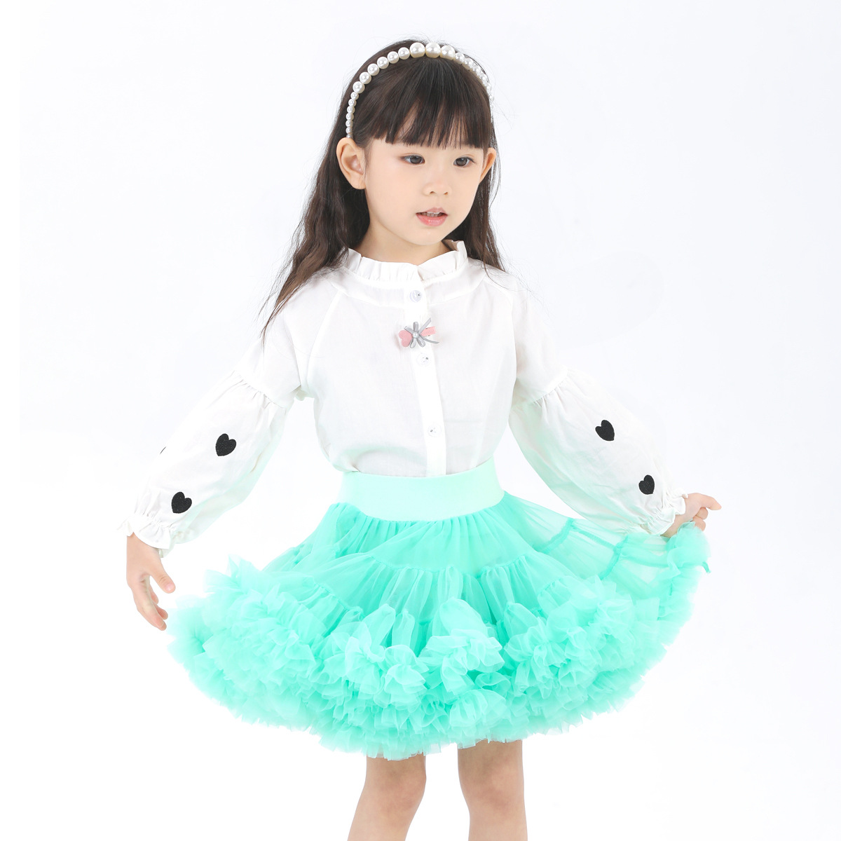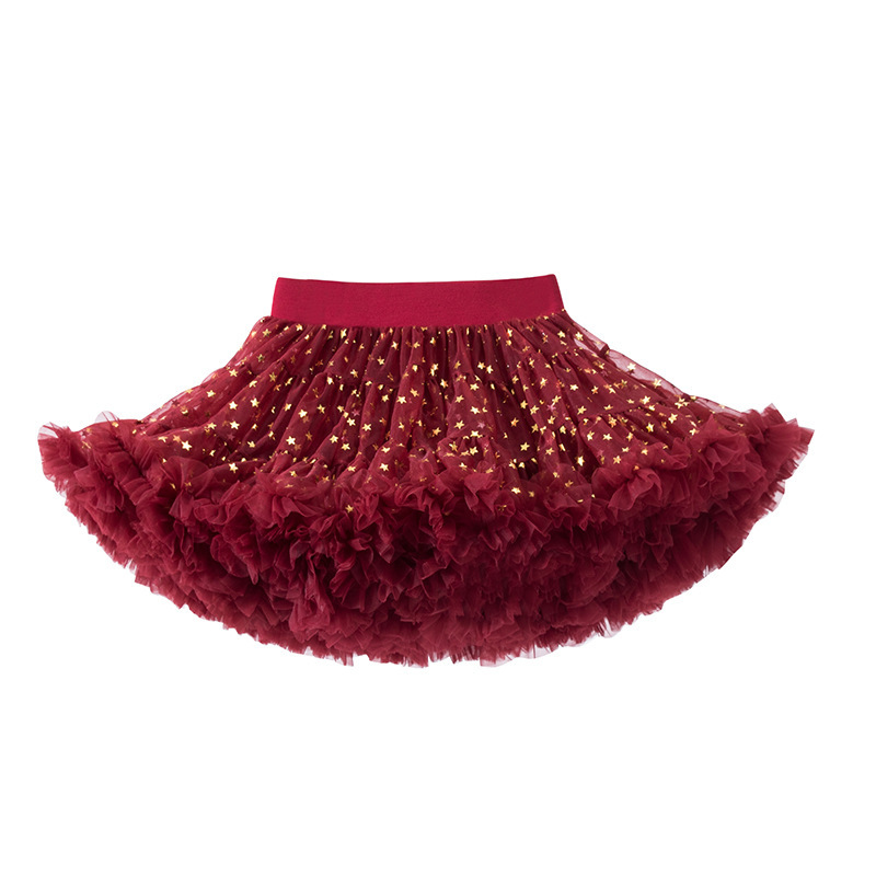 새해 2 세대 소녀 메쉬 스커트 귀여운 버건디 투투 소녀 공주 스커트 달콤한 아기 푹신한 스커트