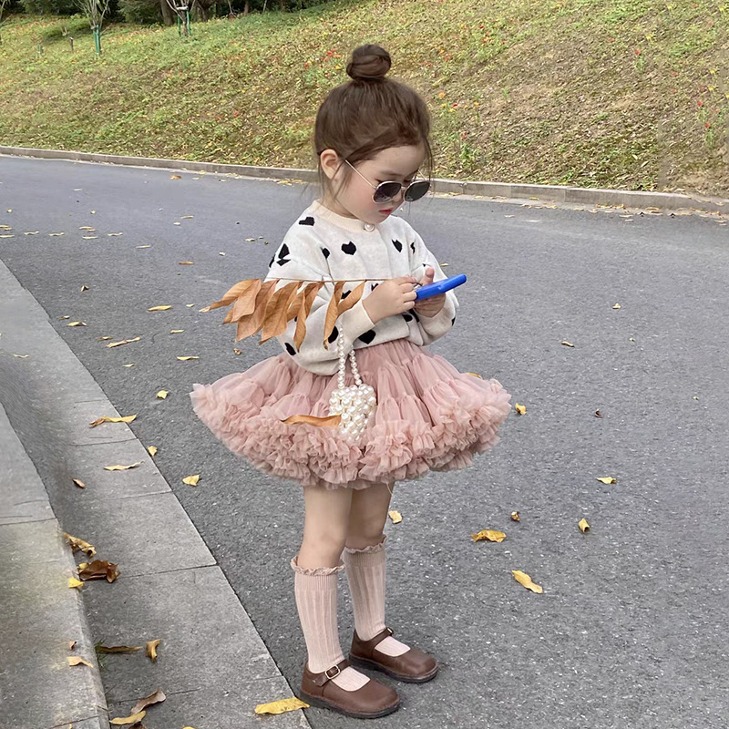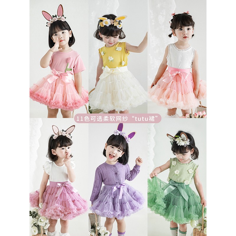 새해 2 세대 소녀 메쉬 스커트 귀여운 버건디 투투 소녀 공주 스커트 달콤한 아기 푹신한 스커트스토어 가기