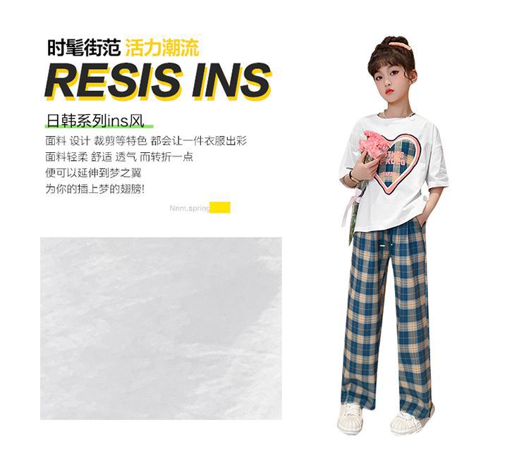 어린이 반팔 티셔츠 세트 코튼 걸스 여름 얇은 스포츠 느슨한 통기성 바지 투피스 세트
