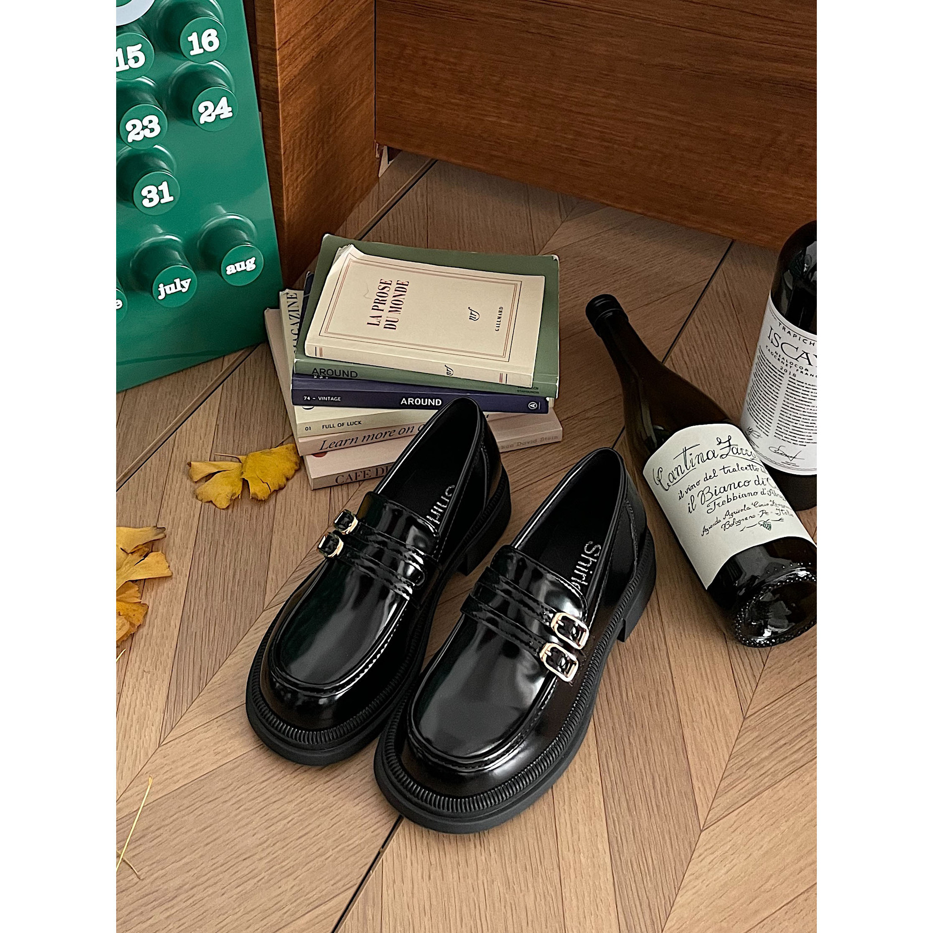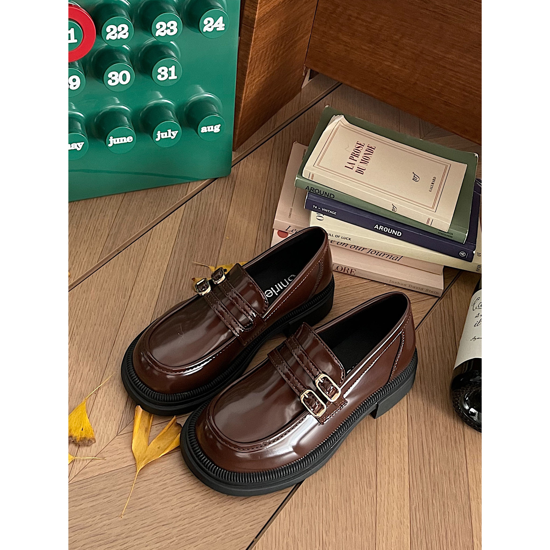 봄과 가을 2024 여성을위한 진미 가죽 신발 새로운 두꺼운 밑창 싱글 레이어 신발 복고풍 영국 스타일 더블 브레스트 올 매치 로퍼스토어 가기