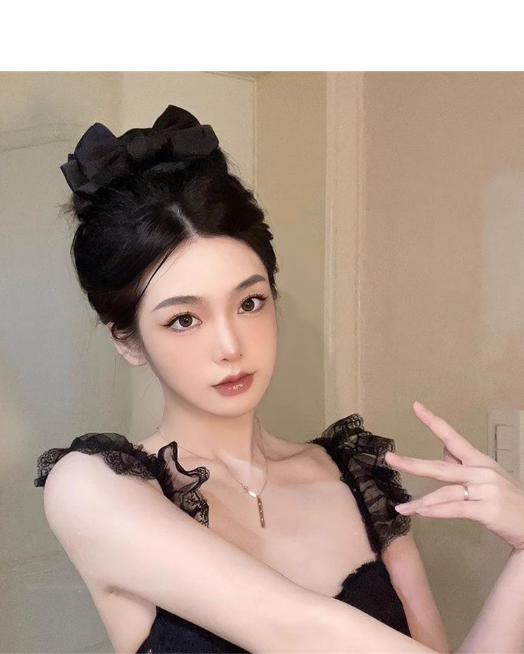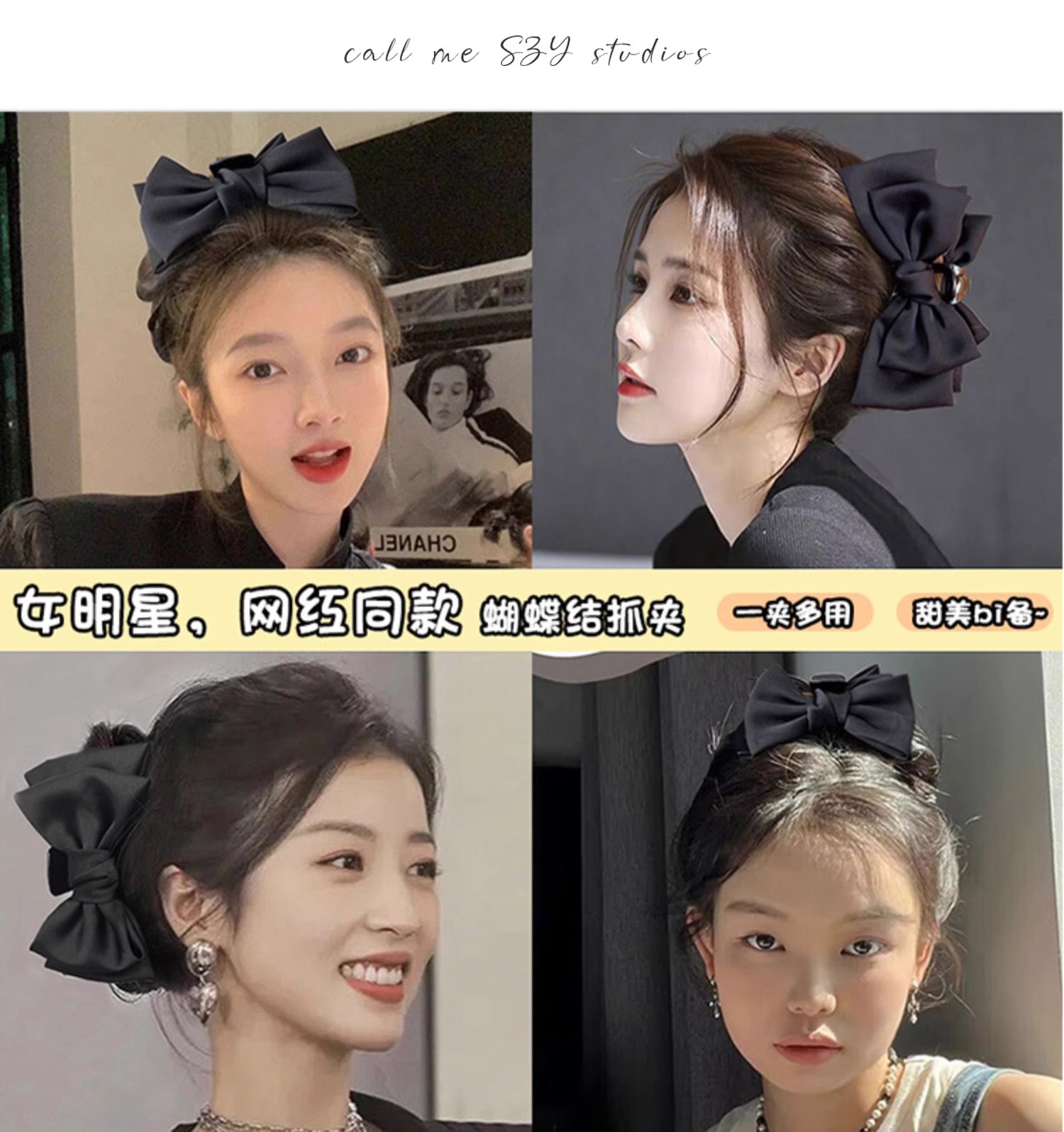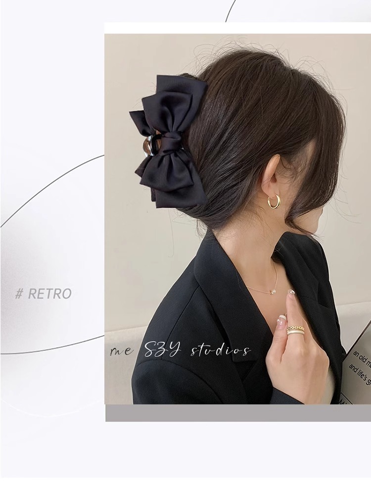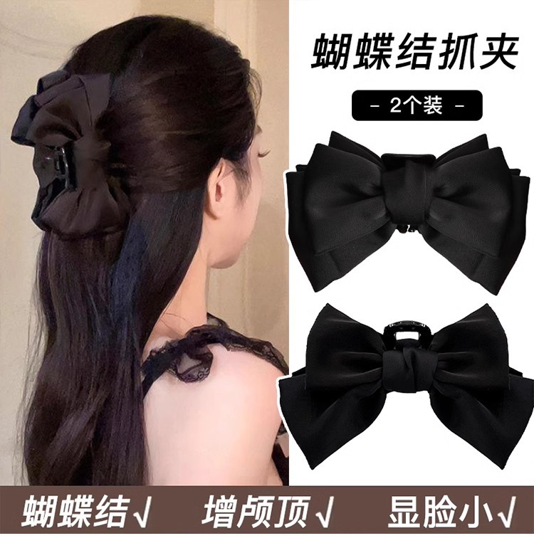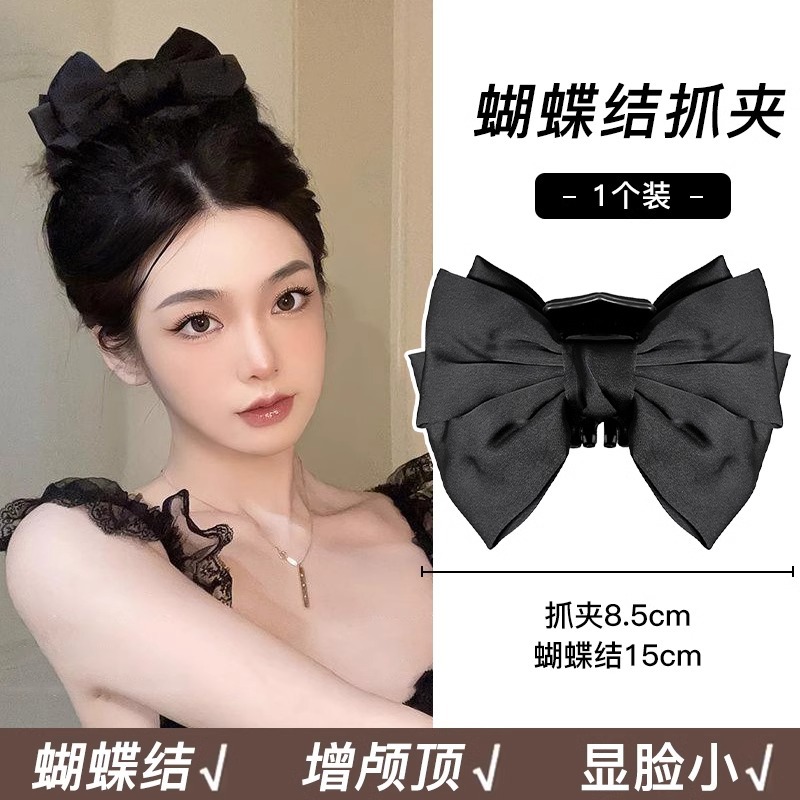 여성용 블랙 양면 리본 클립, 고급 헤어 액세서리, 달콤한 공주 머리, 뒷머리 상어 클립, 머리핀스토어 가기