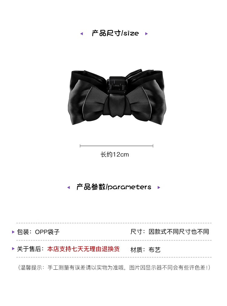 • 1#블랙 새틴 리본 보우 클립, 클립 12cm, 보우 약 12.5cm