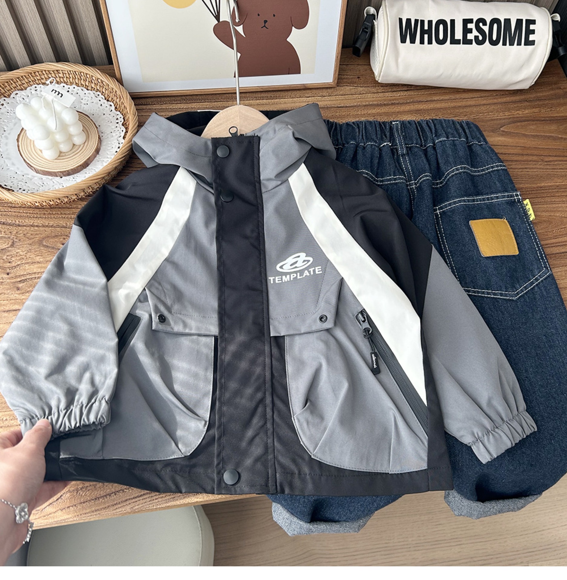 어린이 3-in-one 재킷 봄과 가을 한국어 버전 중대형 소년 학생 야외 컬러 블록 재킷
