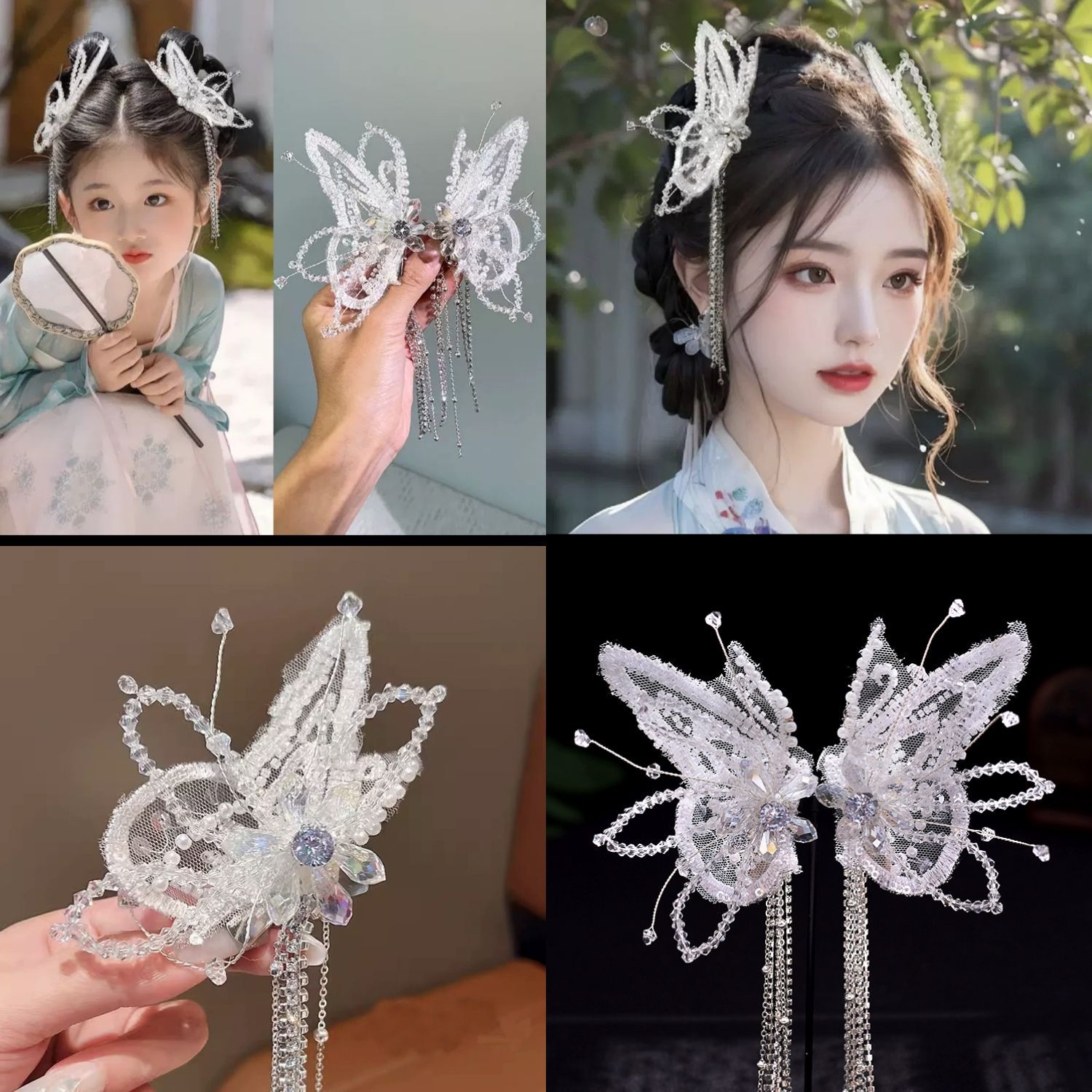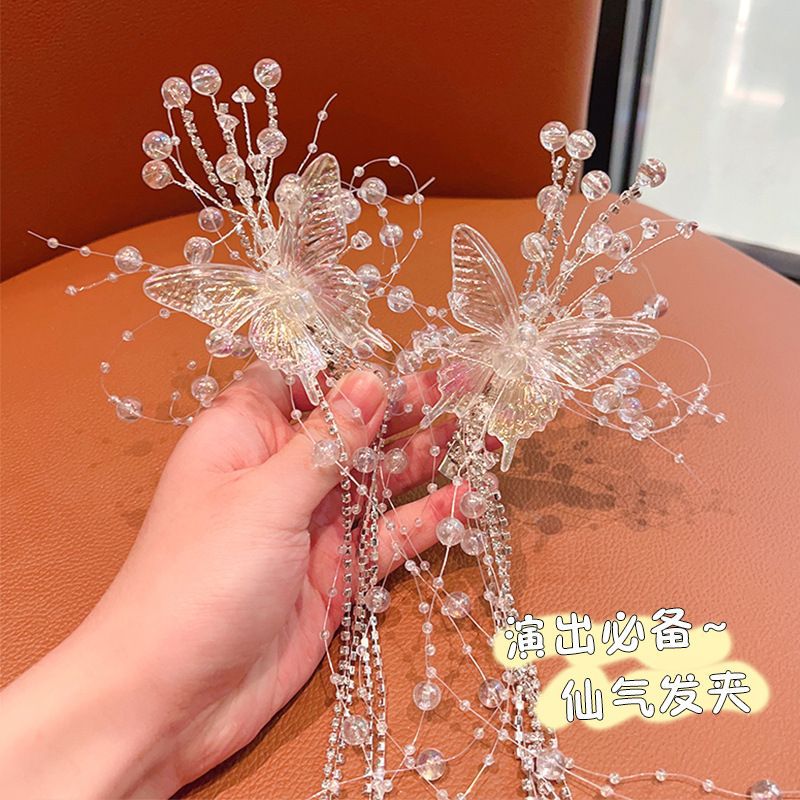 어린이 날 헤드웨어 리 이통 화이트 사슴 같은 머리핀 진주 술 요정 에어 헤어핀 나비 날개 엘프 헤드웨어