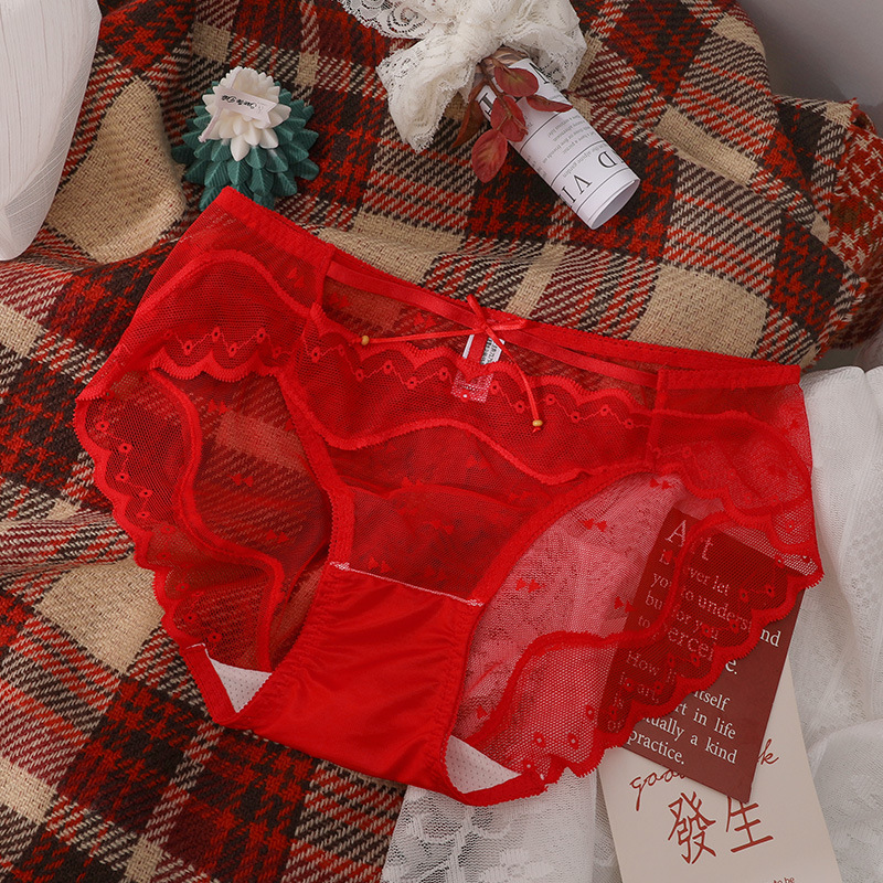 생일 레이스 레드 속옷 여성의 섹시한 순수한면 항균 결혼 선물 드래곤 년 반바지스토어 가기