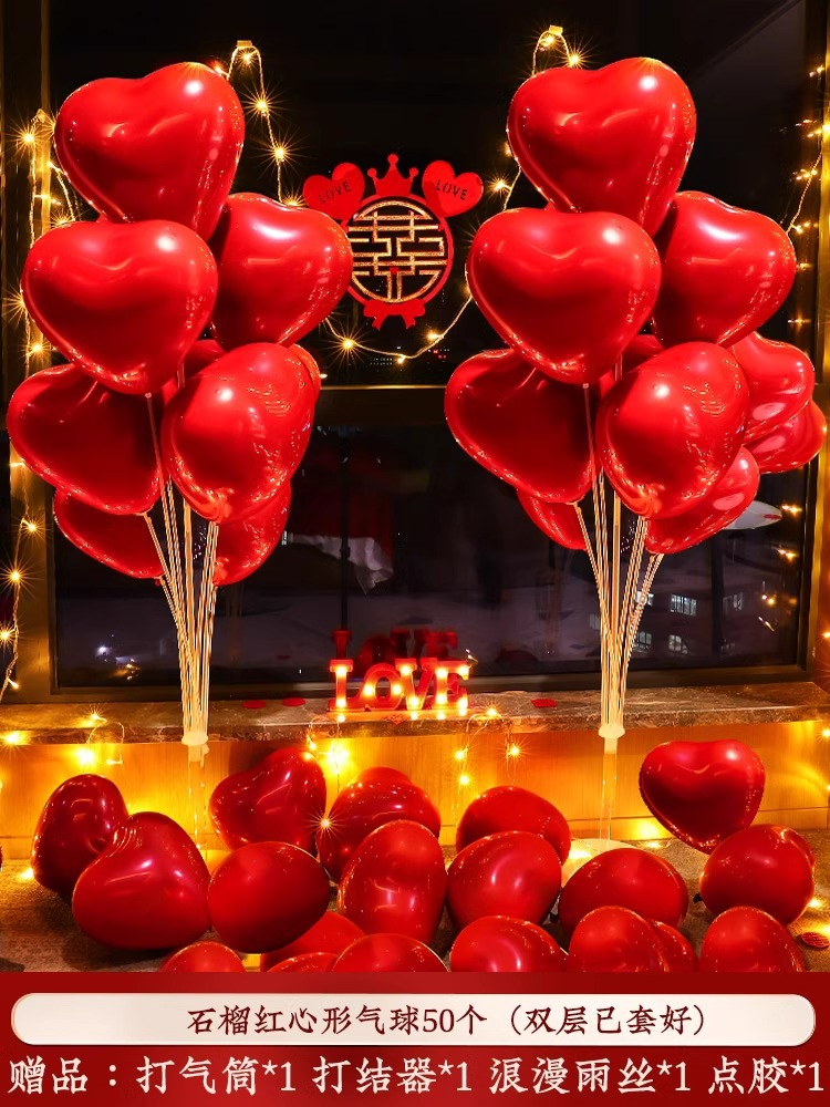 • 50 석류 붉은 심장 모양의 풍선 (더블 레이어가 설정되었습니다)