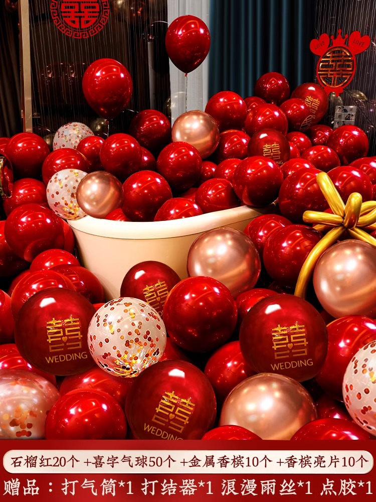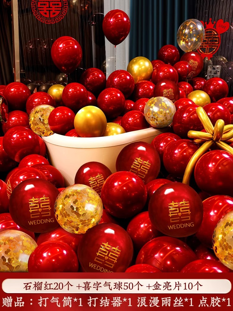 풍선 웨딩 장식 웨딩 룸 웨딩 약혼 웨딩 장면 장식 웨딩 장식 붉은 Xi 단어 용품