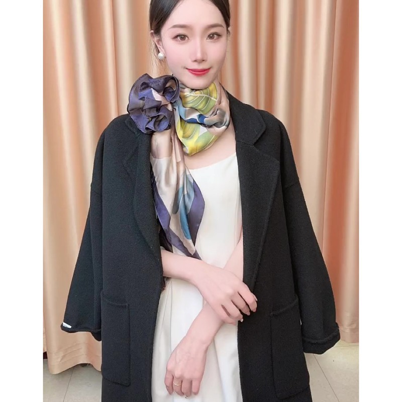 [화려한 모란] 실크 스카프 yourou 원사 봄과 여름 보라색 모란 선 스크린 목도리 실크 스카프 큰 사각형 스카프 올 매치 목도리스토어 가기