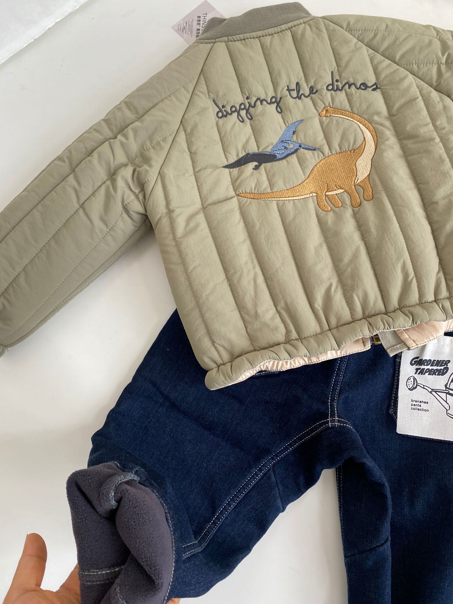 • Ks 회색 녹색 작은 공룡-면 재킷