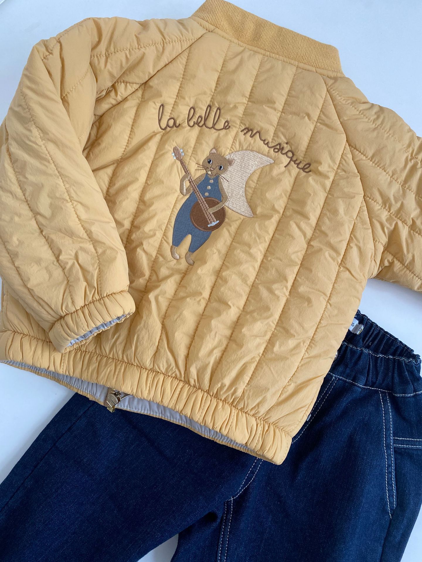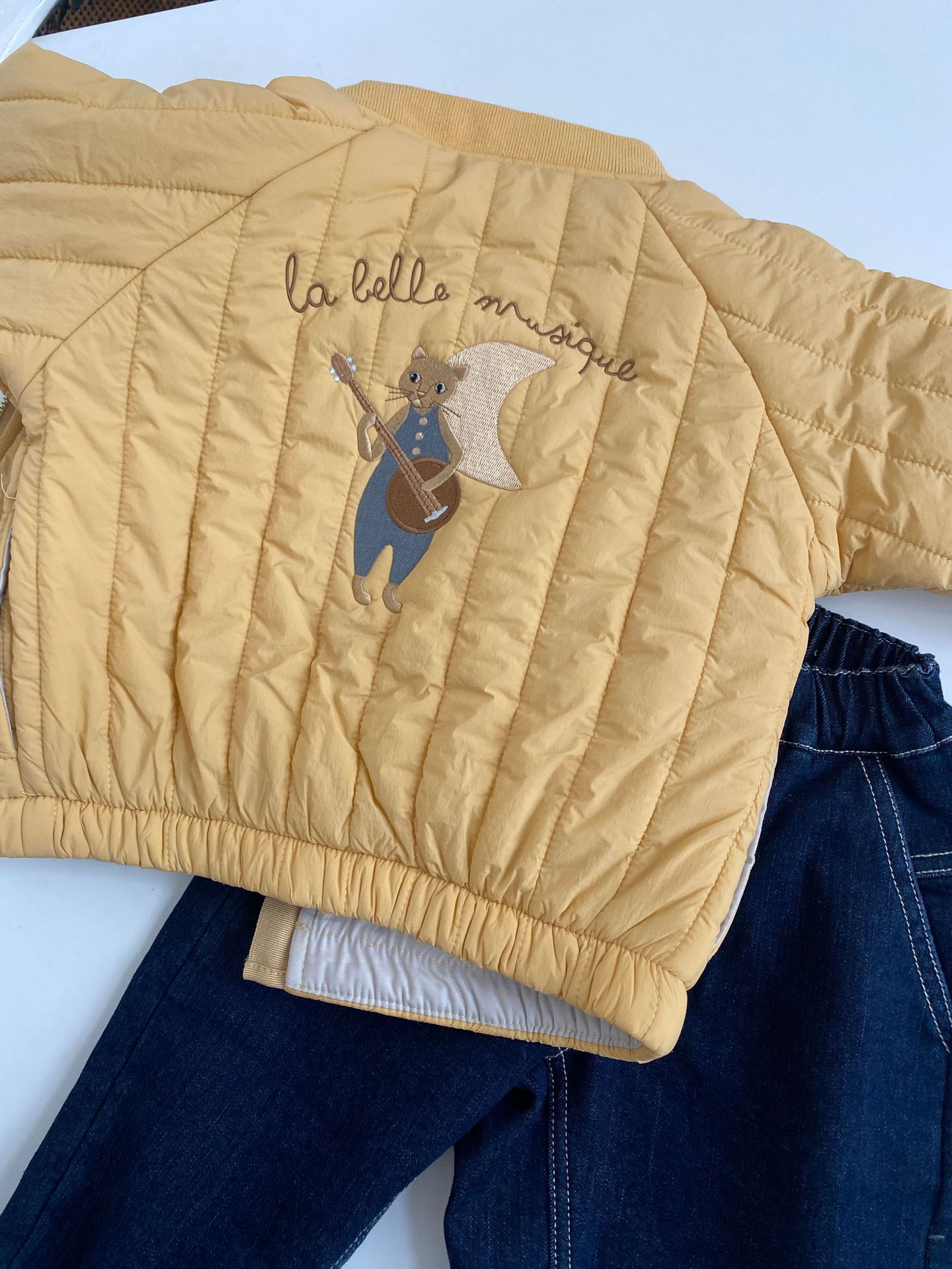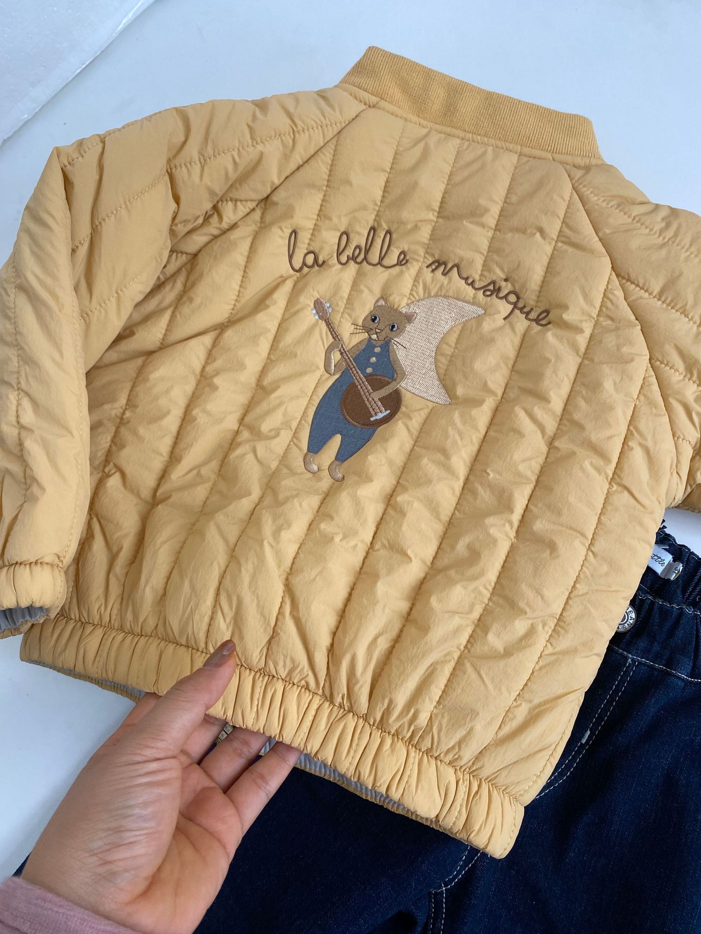• Ks 밀키 노란색 기타 고양이 코튼 재킷 연주