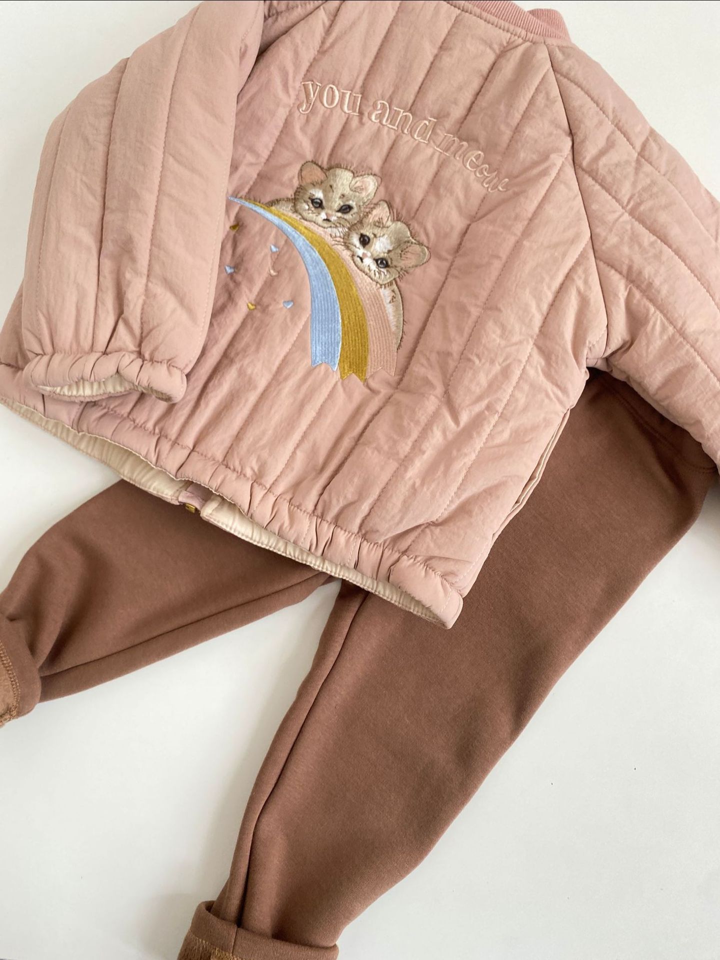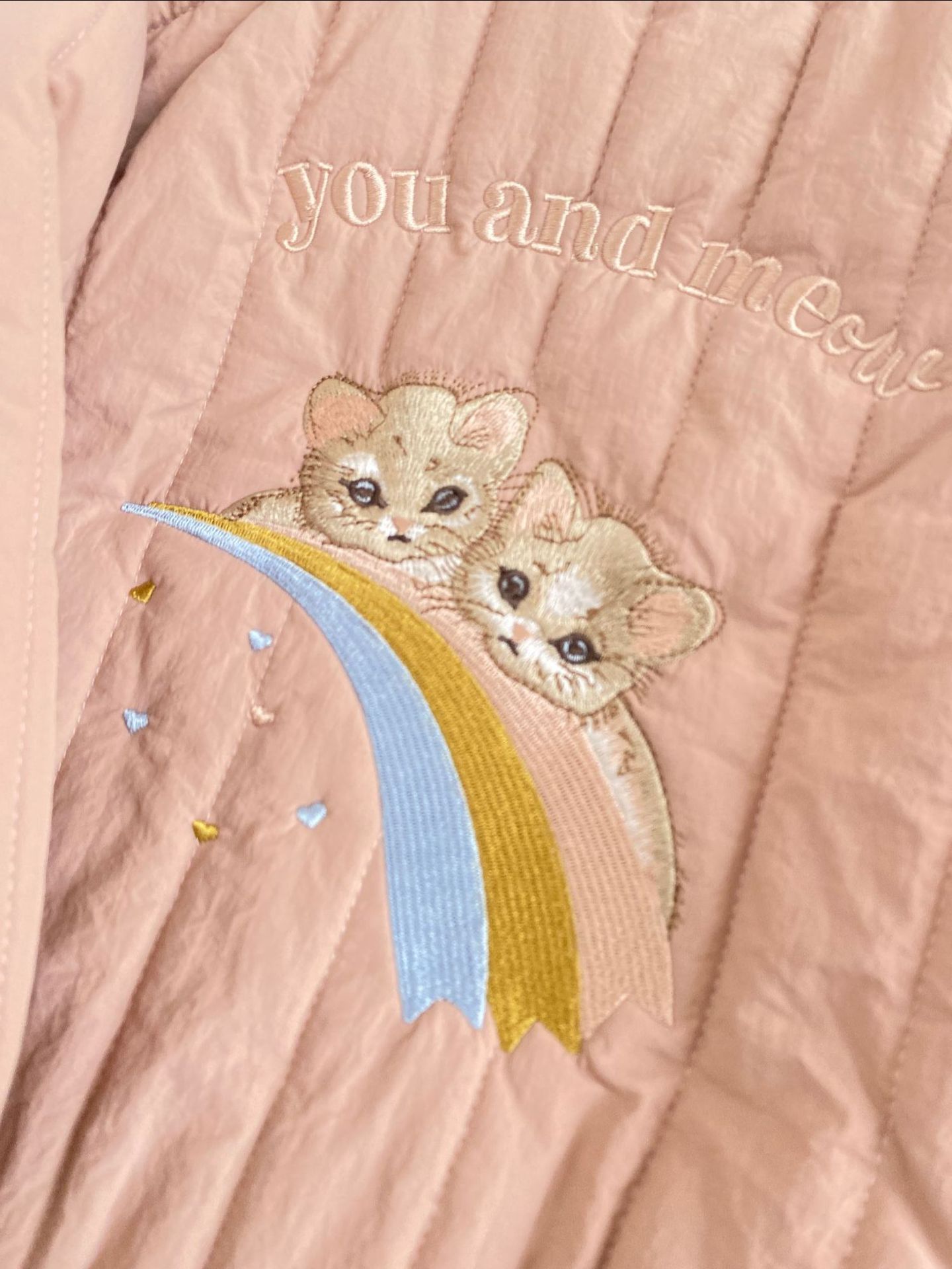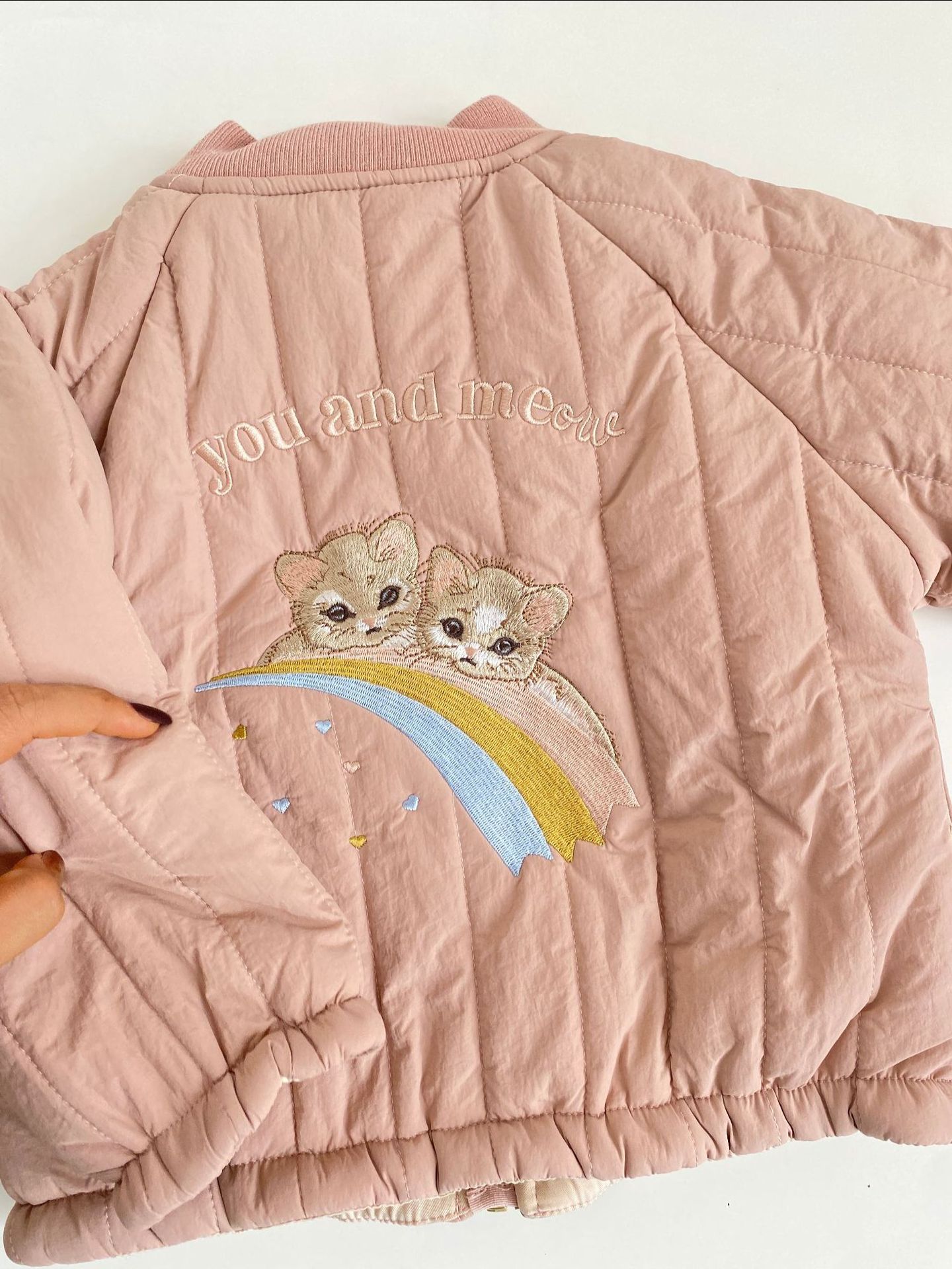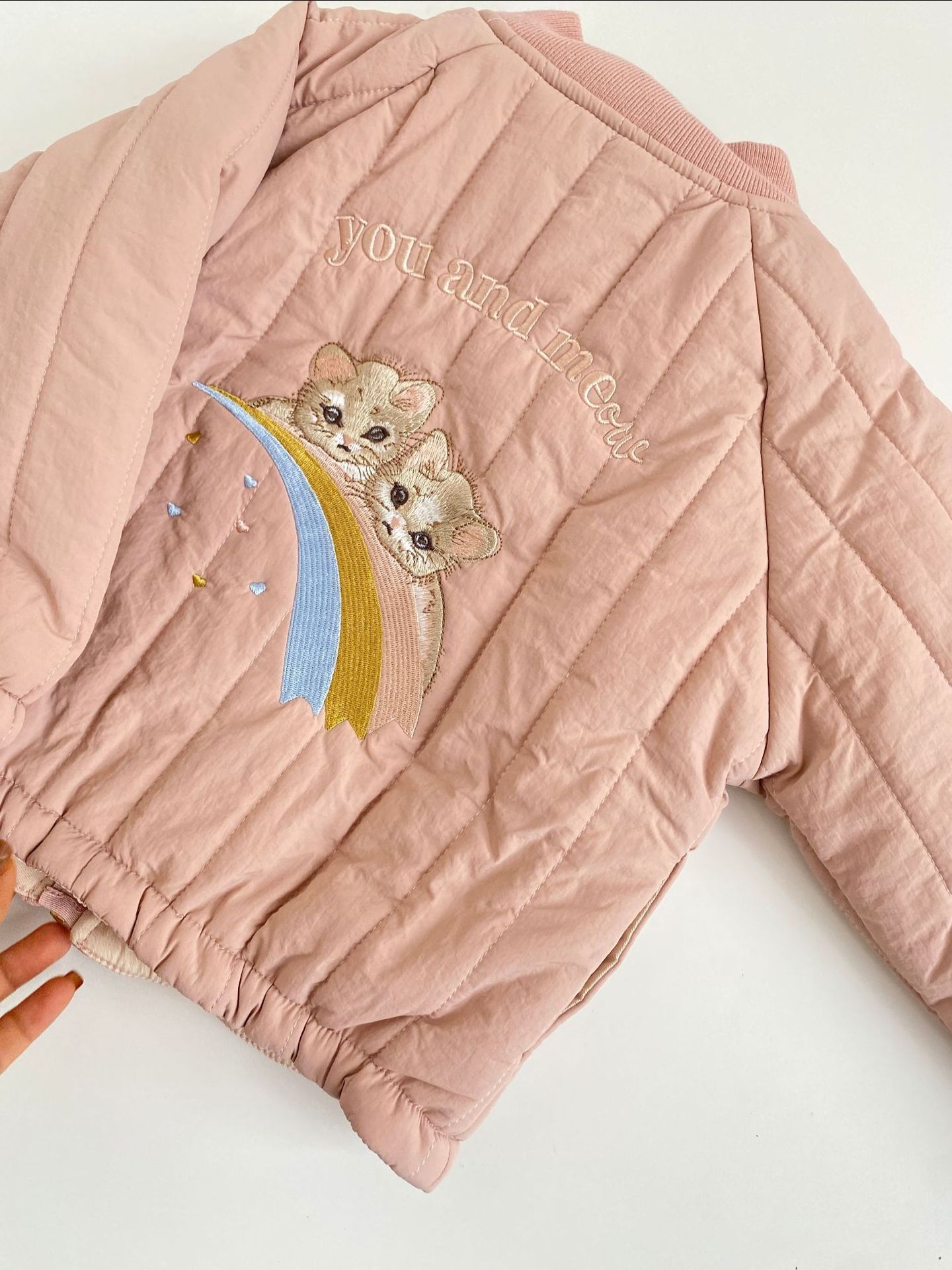• Ks 회색 핑크 고양이 무지개면 재킷