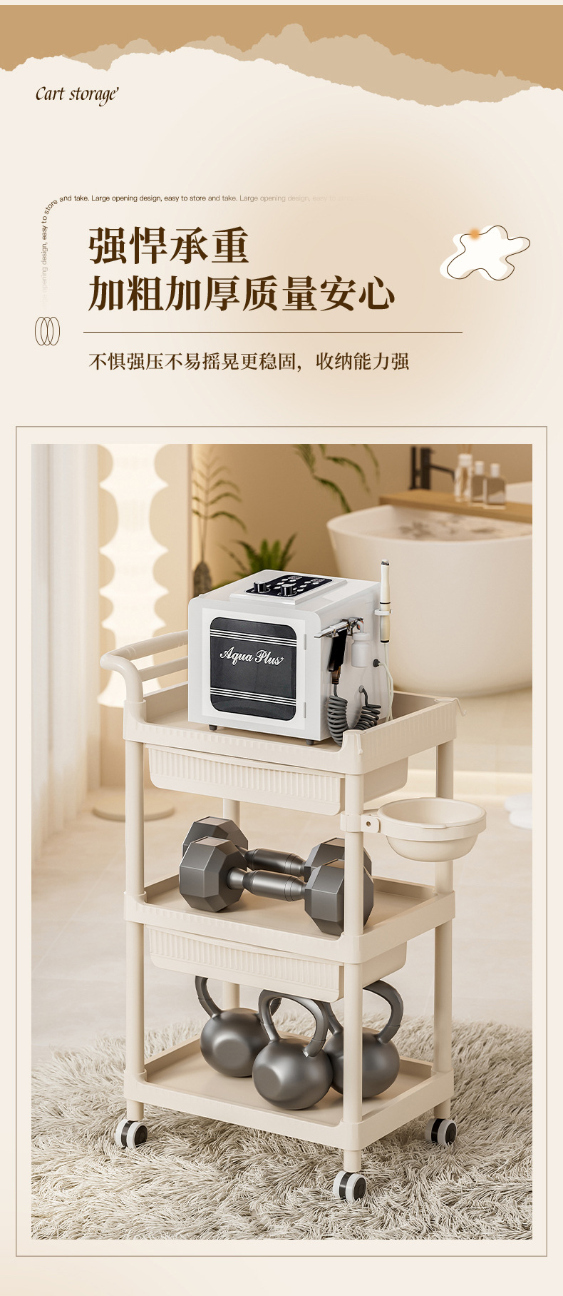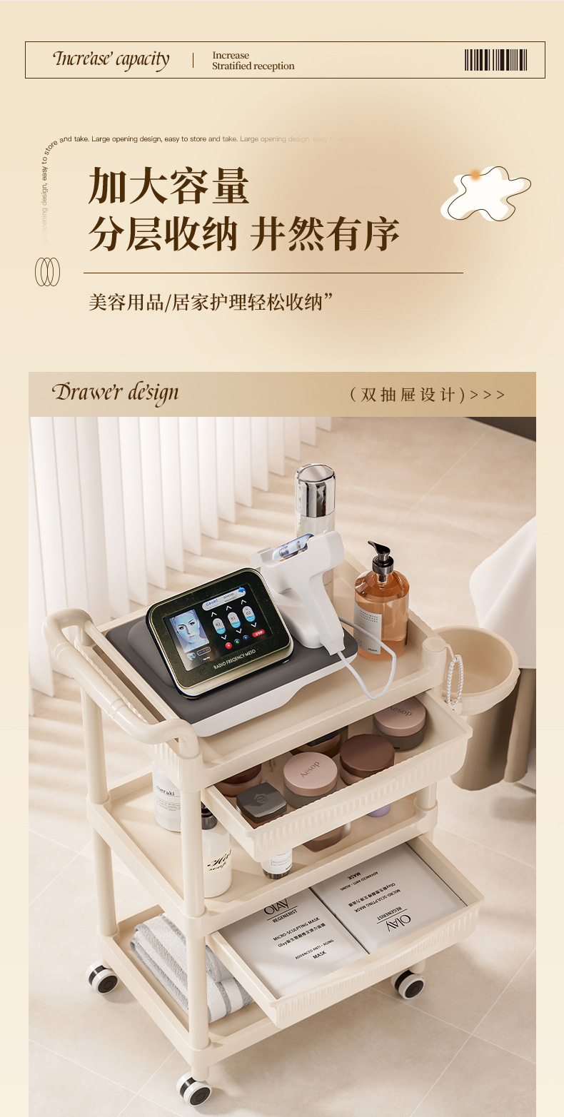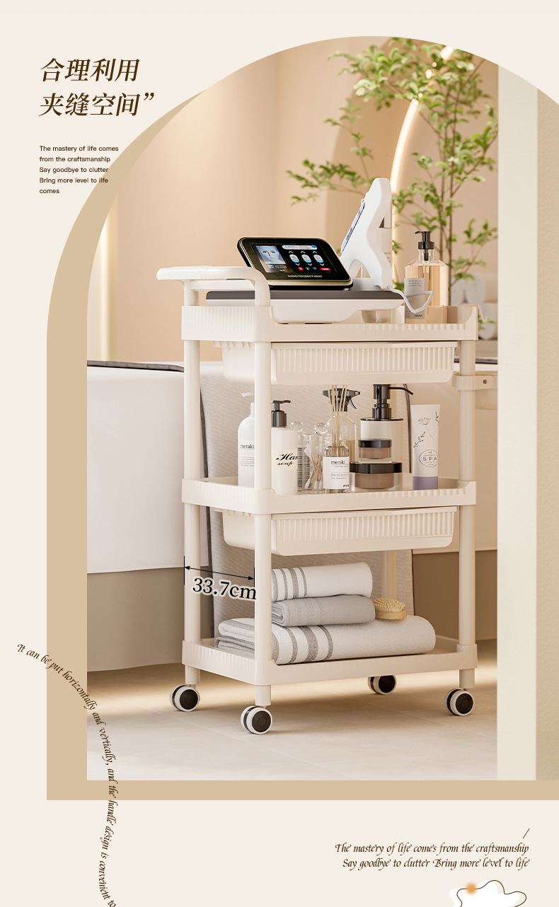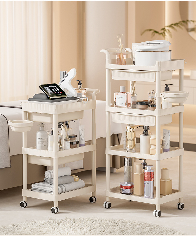 트롤리 미용실 특수 피부 관리 핸드 푸시 랙 플라스틱 관리 도구 도구 트롤리 정리 랙