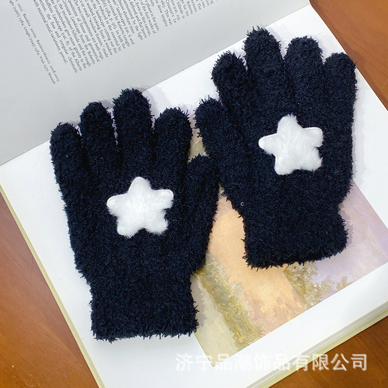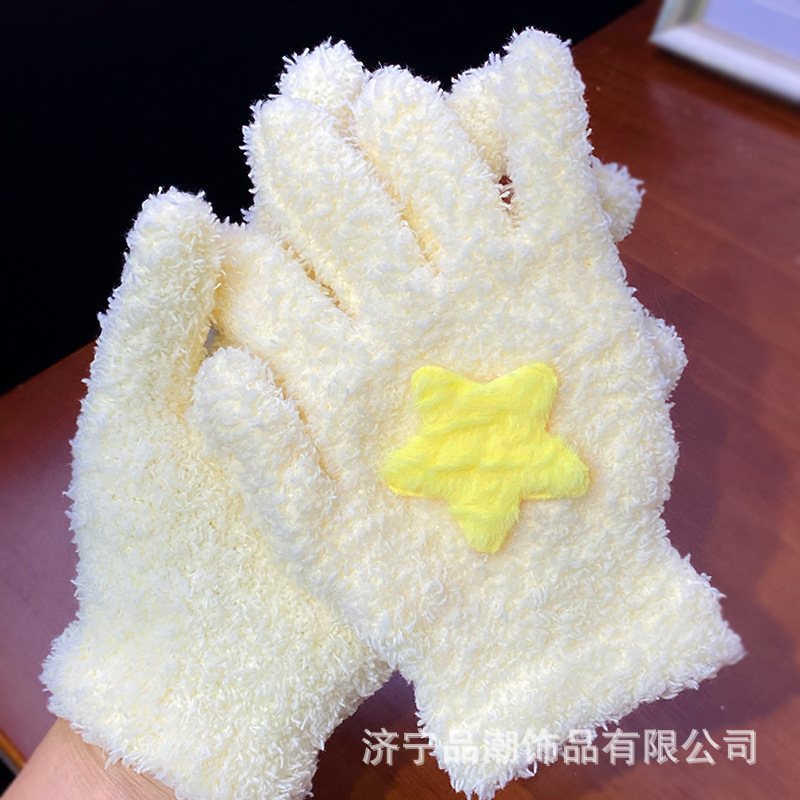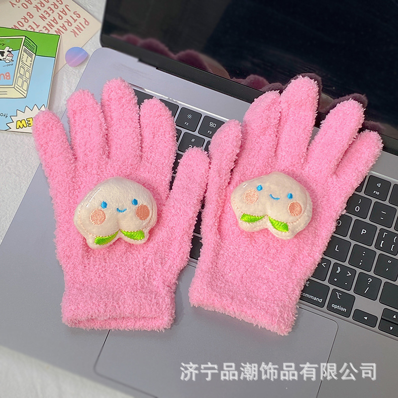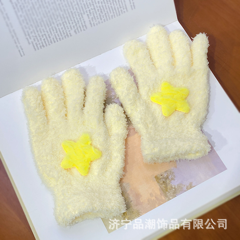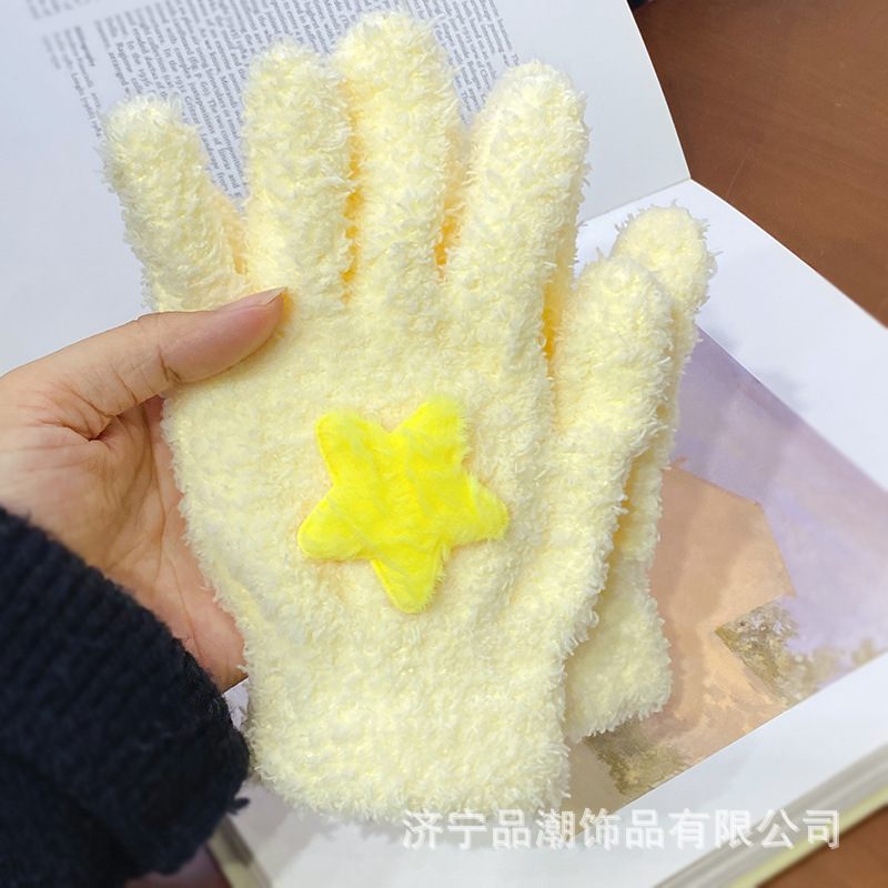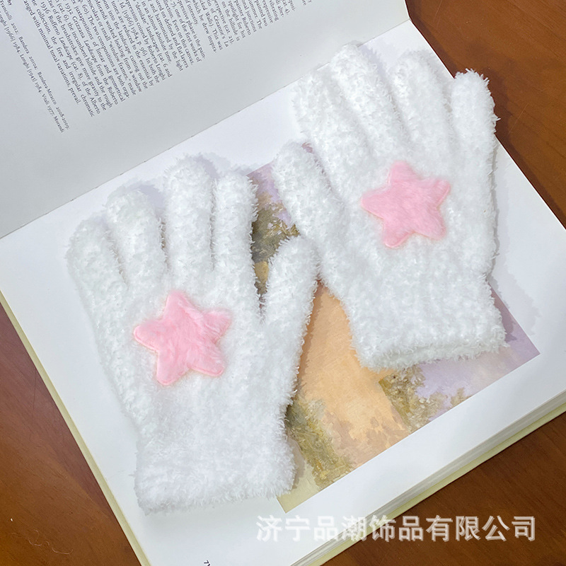 Ins 스타일 한국 스타일 우유 분말 스타 산호 양털 장갑 따뜻한 학생 겨울 야외 승마 장갑 최고의 친구를위한 같은 스타일