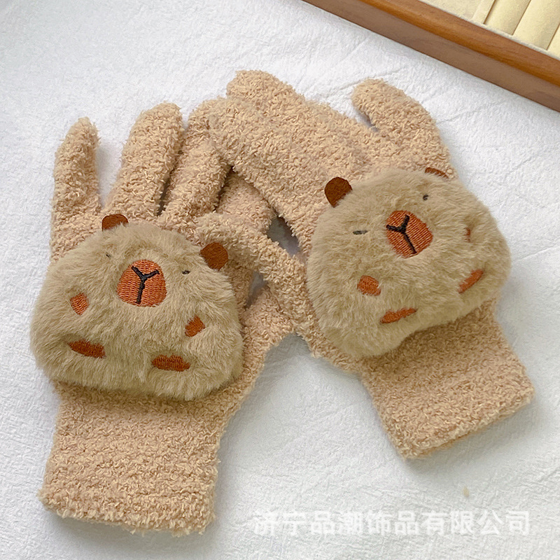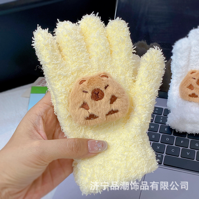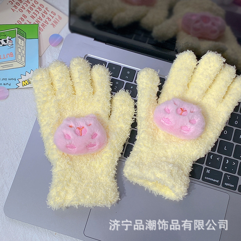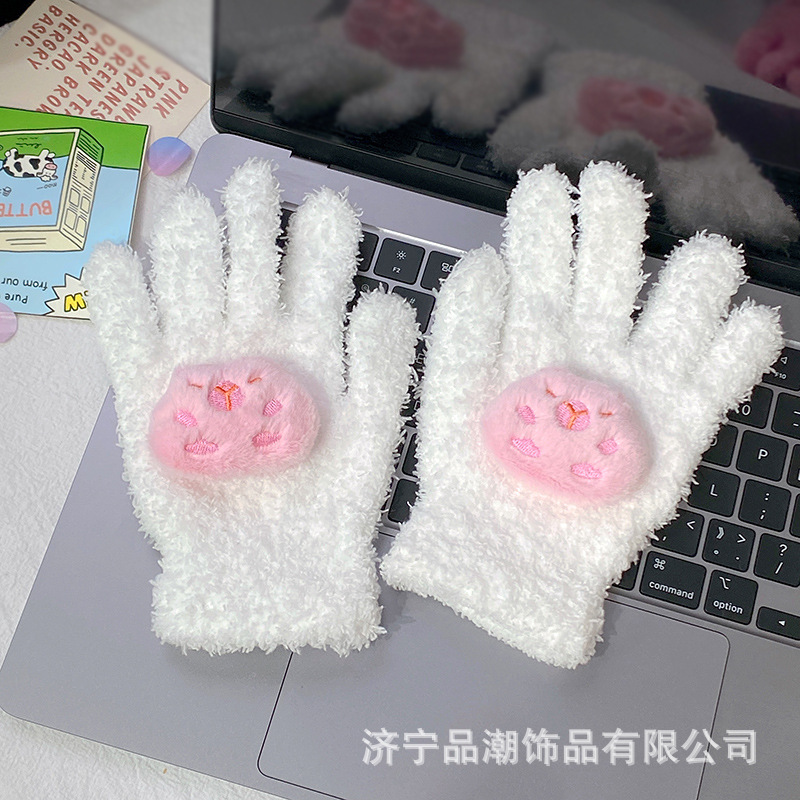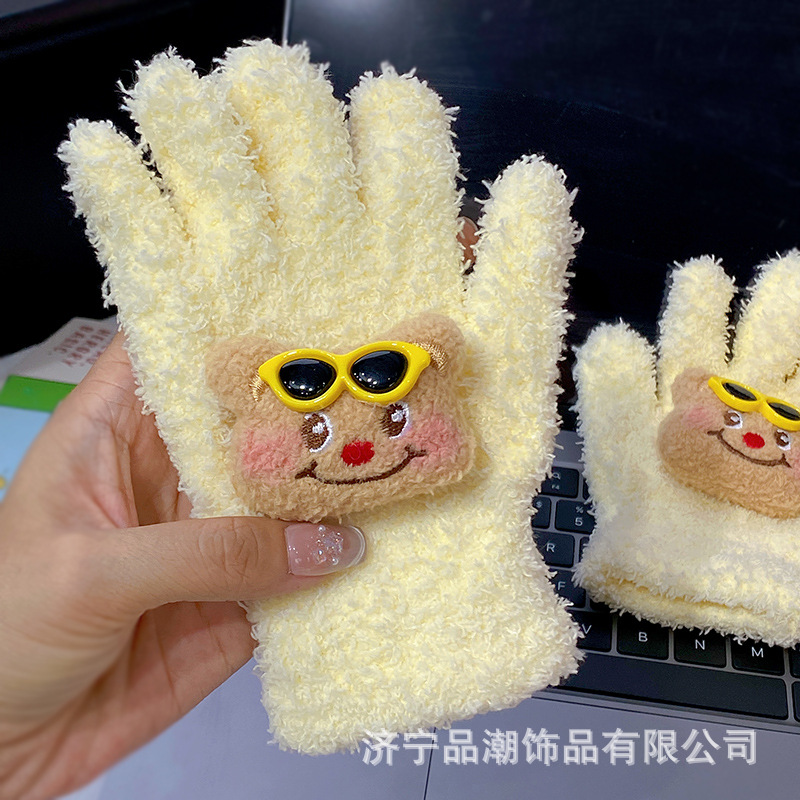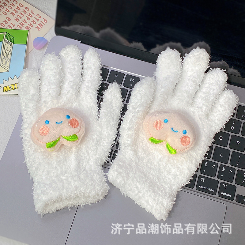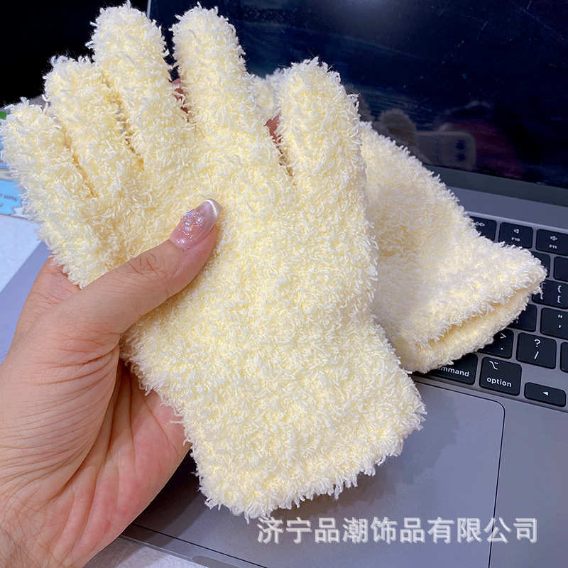 Ins 스타일 한국 스타일 우유 분말 스타 산호 양털 장갑 따뜻한 학생 겨울 야외 승마 장갑 최고의 친구를위한 같은 스타일