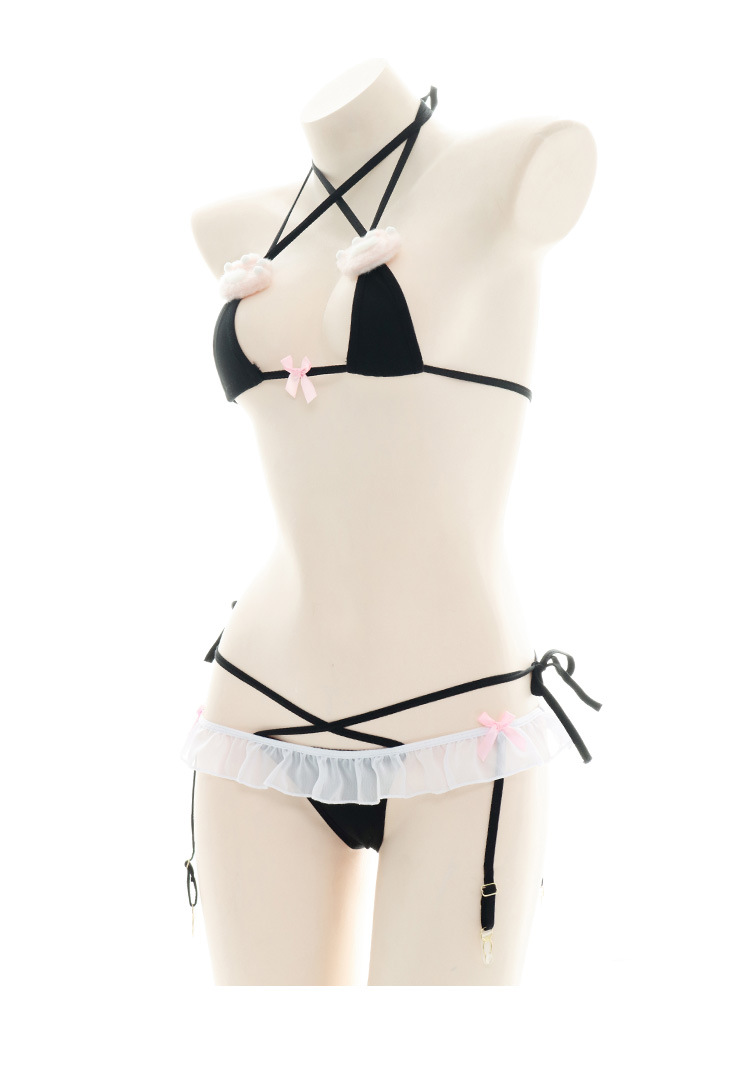 재미있는 3 점 비키니 섹시한 고양이 발톱 목 파자마 홈 의류 개인 속옷 세트 도매 B0235