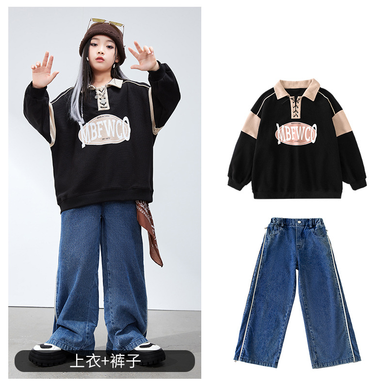 힙합 어린이 패션 옷 봄과 가을 힙합 소년 소녀 아메리칸 레트로 스웨트 세트 어린이 어린이 어린이 어린이 어린이 공연
