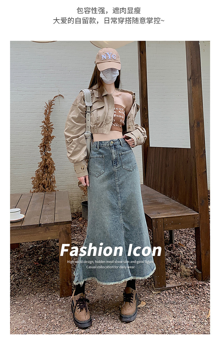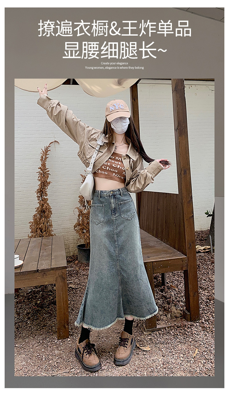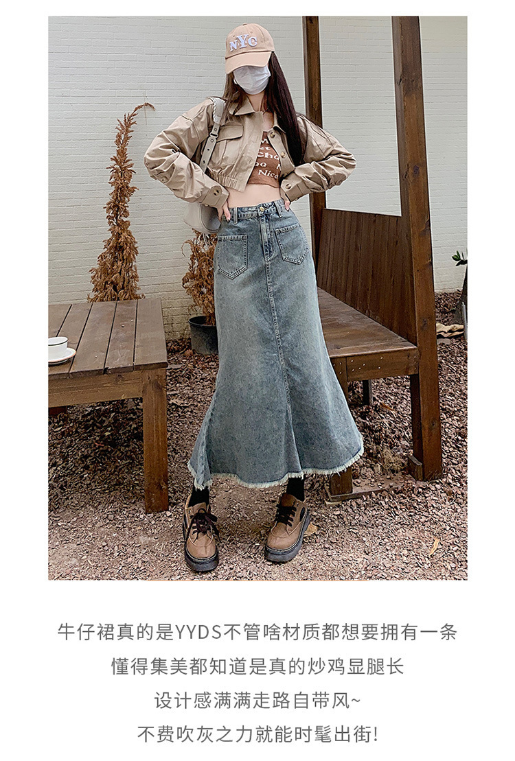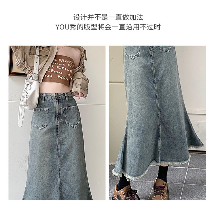 피쉬 테일 스커트 여성의 가을과 겨울 복고풍 고민 컬러 하이 웨이스트 슬림 로우 슬림 중간 길이스토어 가기
