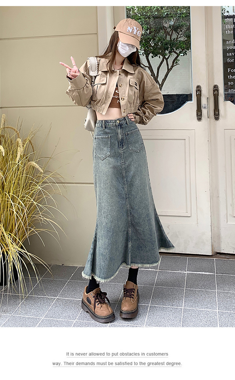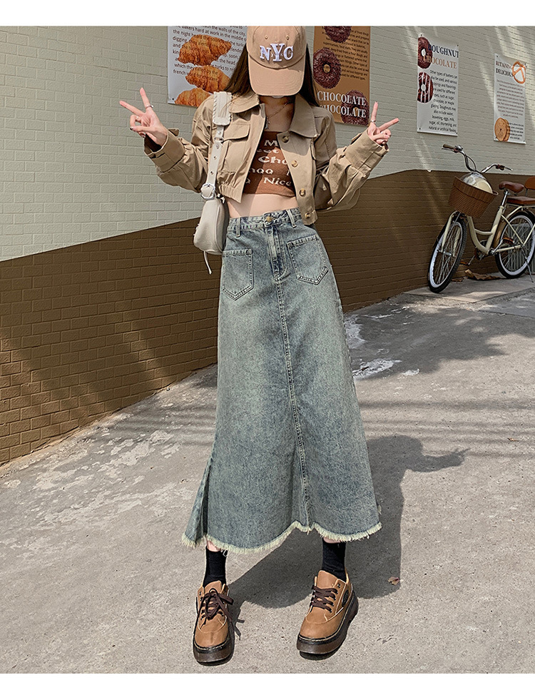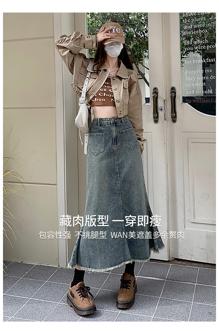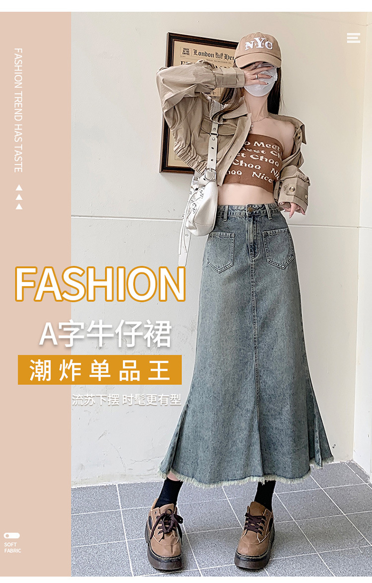 피쉬 테일 스커트 여성의 가을과 겨울 복고풍 고민 컬러 하이 웨이스트 슬림 로우 슬림 중간 길이스토어 가기