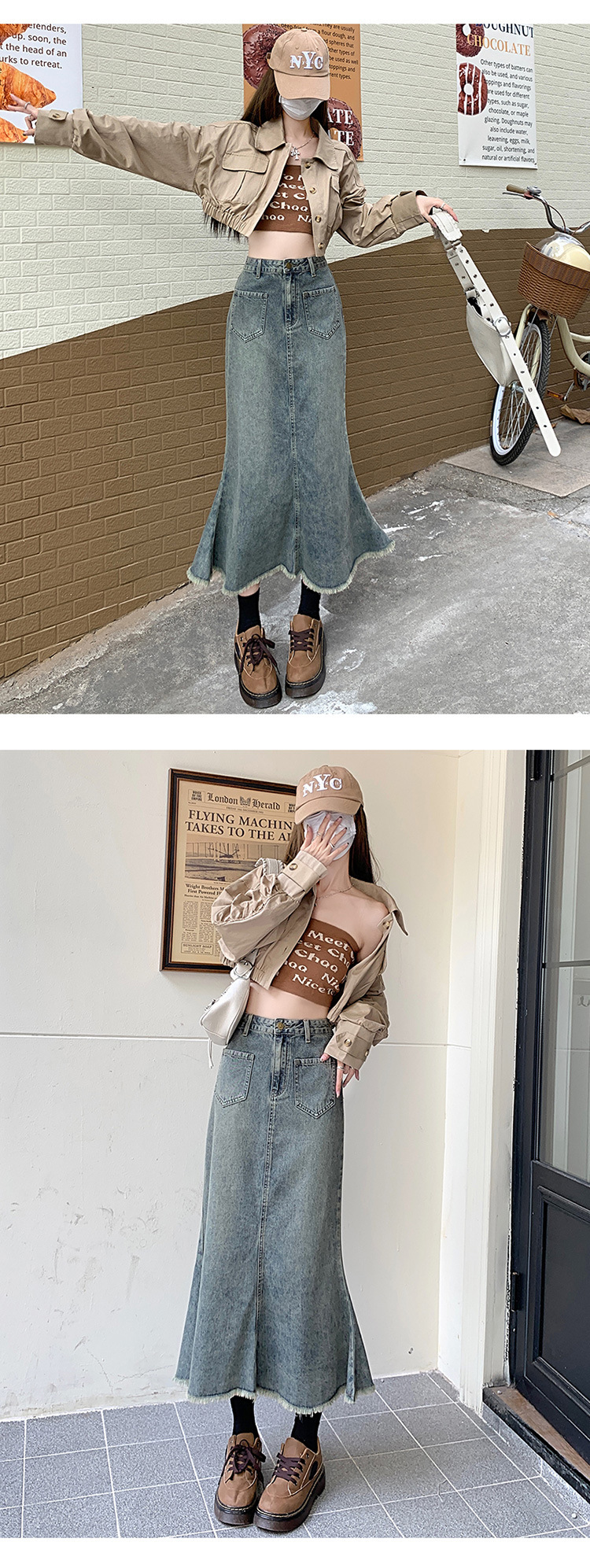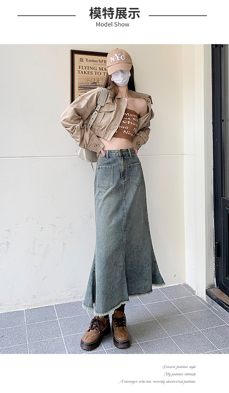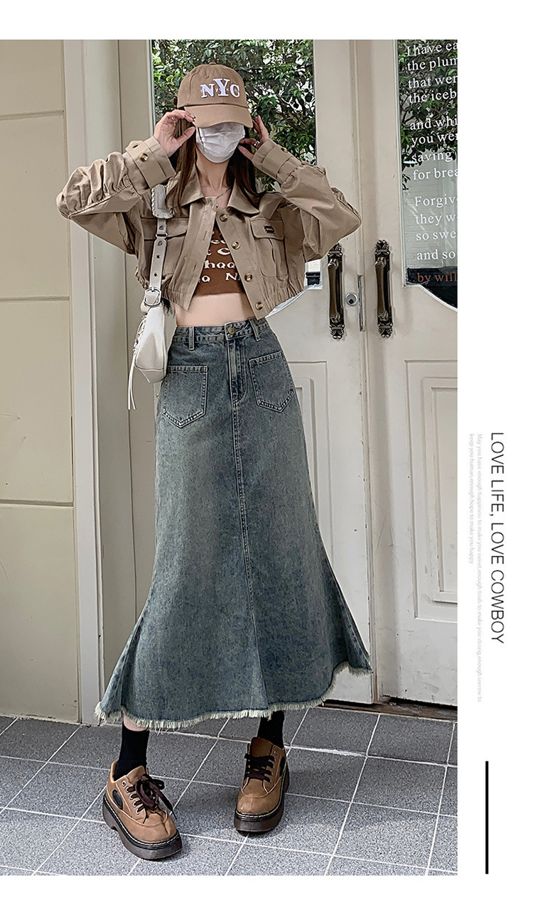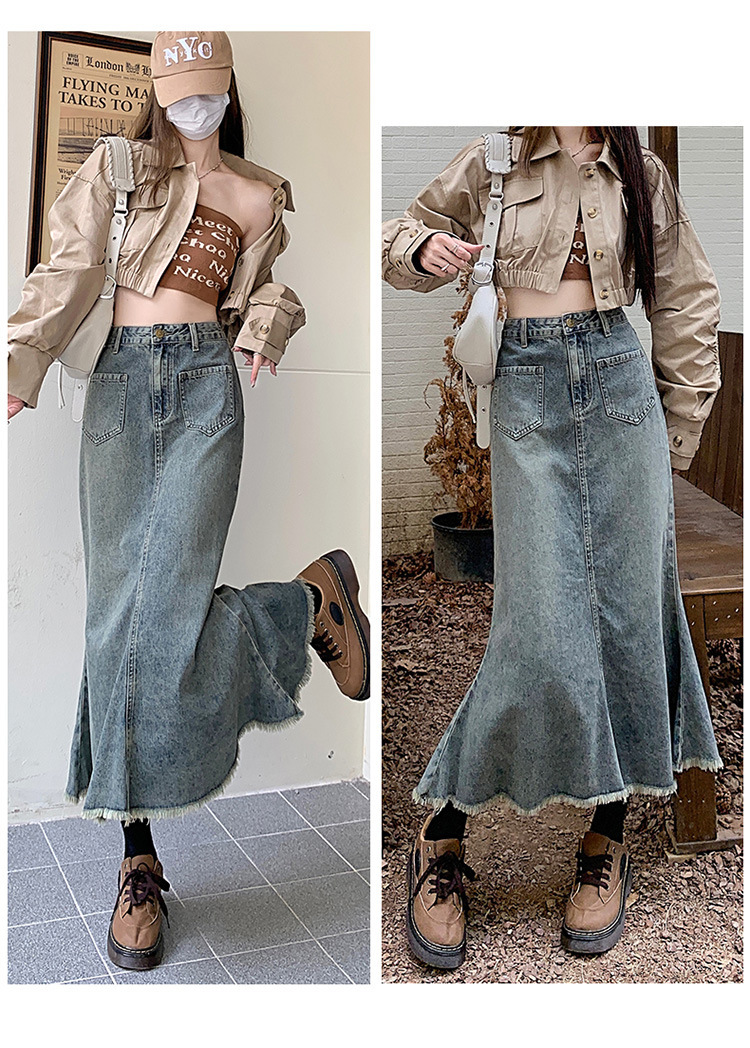 피쉬 테일 스커트 여성의 가을과 겨울 복고풍 고민 컬러 하이 웨이스트 슬림 로우 슬림 중간 길이