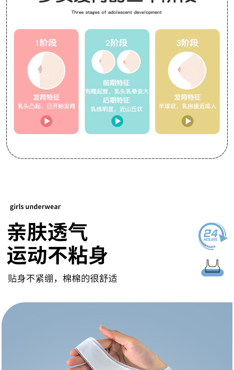여자 속옷 여성 발달 기간 중학생 원활한 어린이 조끼 가슴 패드 포장 가슴 튜브 탑스토어 가기