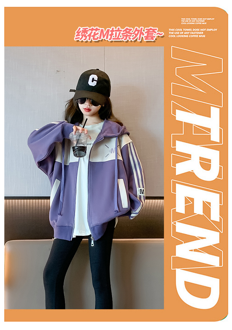 소녀의 봄 자수 M 풀업 코트 2024 새로운 큰 어린이 서양식 캐주얼 후드 재킷 윈드 브레이커 봄 옷 9
